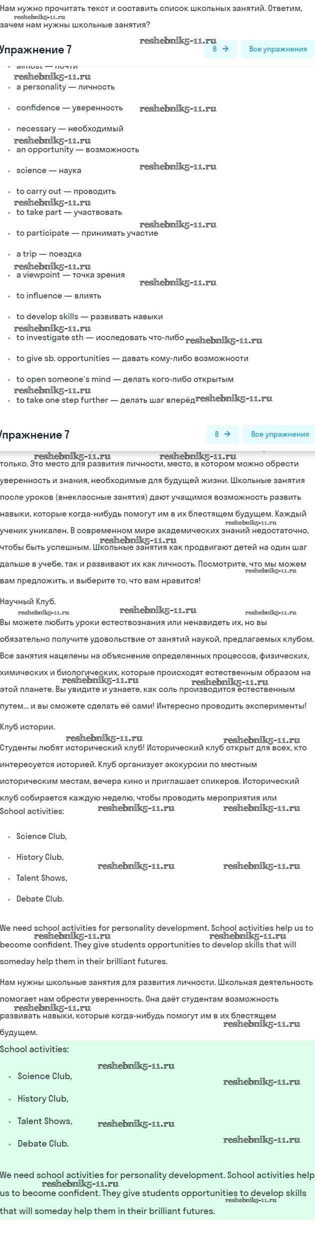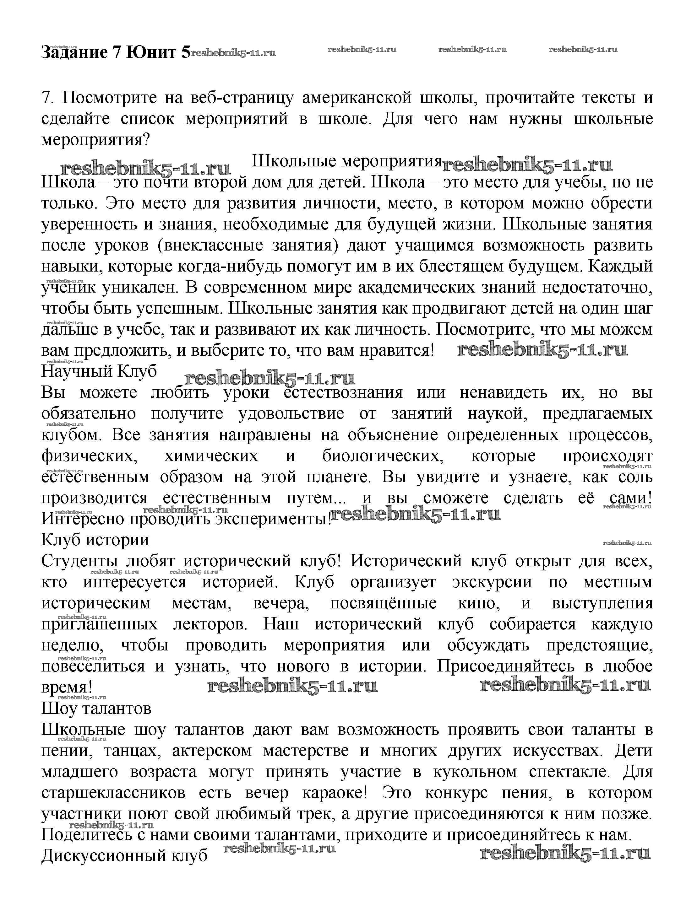 Готовая домашняя работа с ответами по Английскому языку за 7 класс Вербицкая, Гаярделли, Редли, Миндрул, Савчук Учебник Forward Часть 1, 2 Вентана-граф 2017 ФГОС - Unit 5. School activities 7