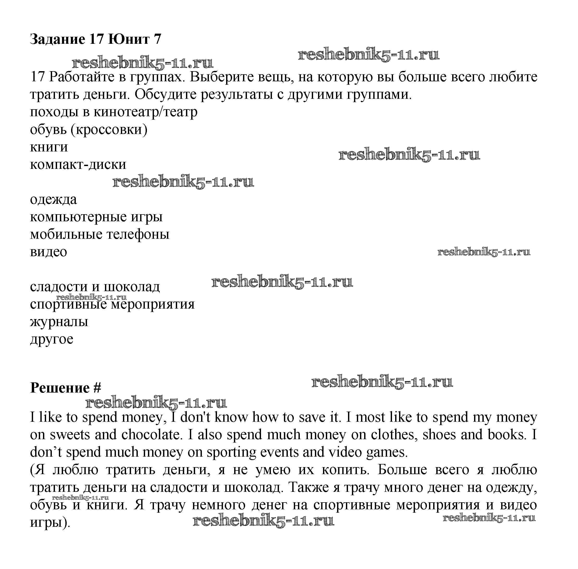 Готовая домашняя работа с ответами по Английскому языку за 7 класс Вербицкая, Гаярделли, Редли, Миндрул, Савчук Учебник Forward Часть 1, 2 Вентана-граф 2017 ФГОС - Unit 7. Pocket money 17