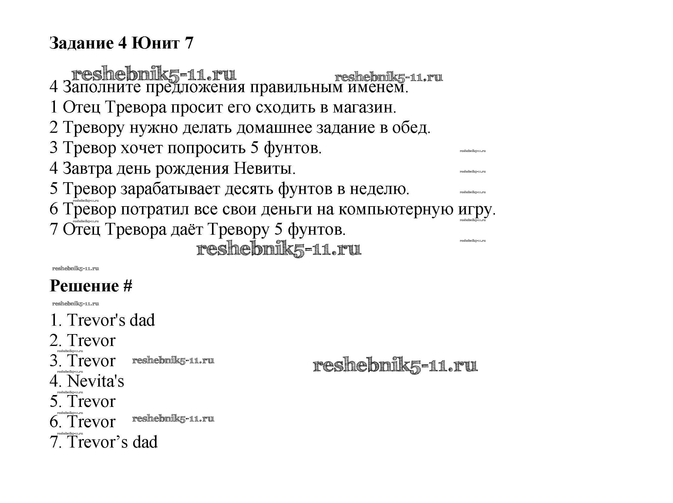 Готовая домашняя работа с ответами по Английскому языку за 7 класс Вербицкая, Гаярделли, Редли, Миндрул, Савчук Учебник Forward Часть 1, 2 Вентана-граф 2017 ФГОС - Unit 7. Pocket money 4