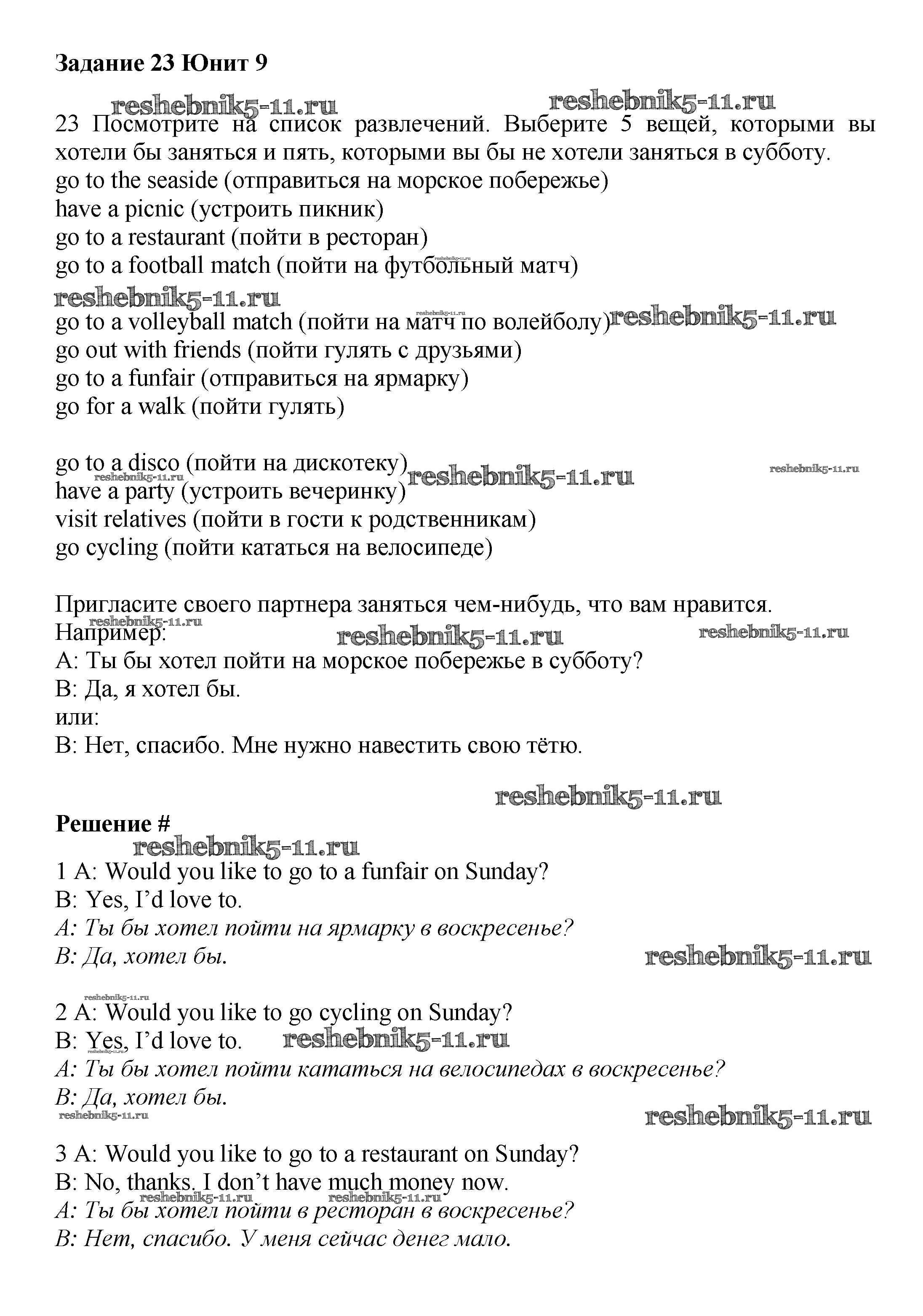 Готовая домашняя работа с ответами по Английскому языку за 7 класс Вербицкая, Гаярделли, Редли, Миндрул, Савчук Учебник Forward Часть 1, 2 Вентана-граф 2017 ФГОС - Unit 9. Free time 23