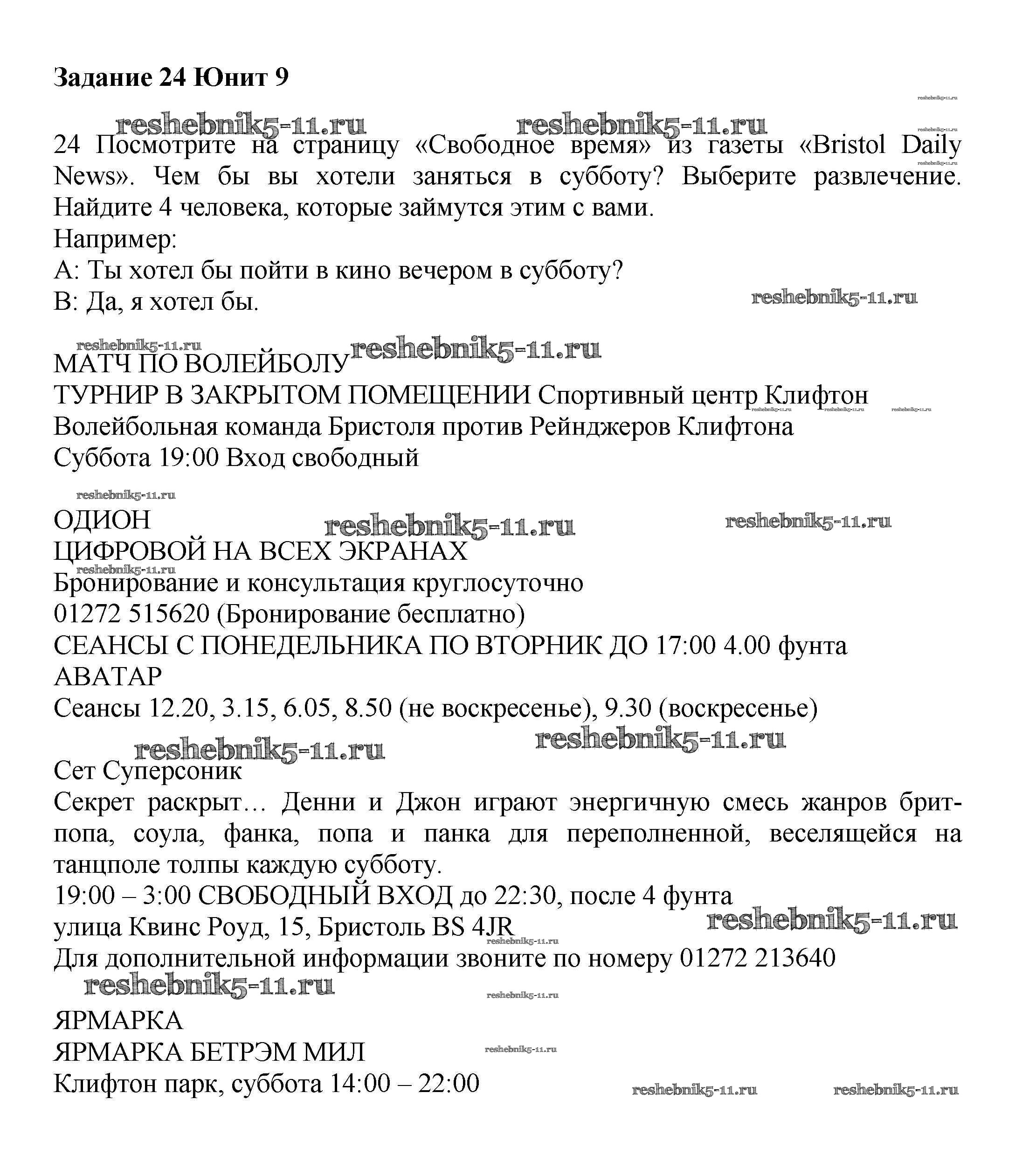 Готовая домашняя работа с ответами по Английскому языку за 7 класс Вербицкая, Гаярделли, Редли, Миндрул, Савчук Учебник Forward Часть 1, 2 Вентана-граф 2017 ФГОС - Unit 9. Free time 24