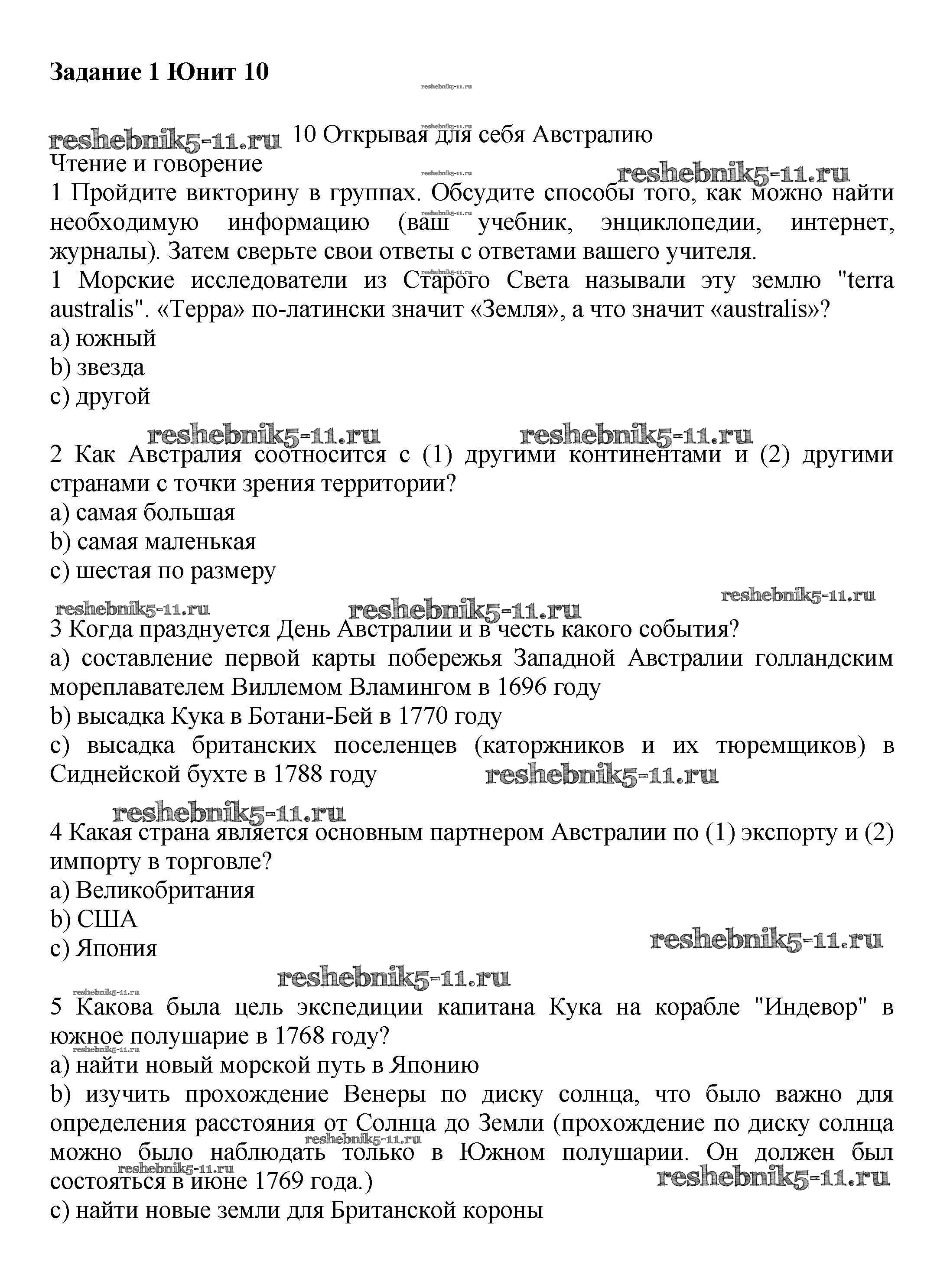 Готовая домашняя работа с ответами по Английскому языку за 7 класс Вербицкая, Гаярделли, Редли, Миндрул, Савчук Учебник Forward Часть 1, 2 Вентана-граф 2017 ФГОС - Unit 10. Discovering Australia 1