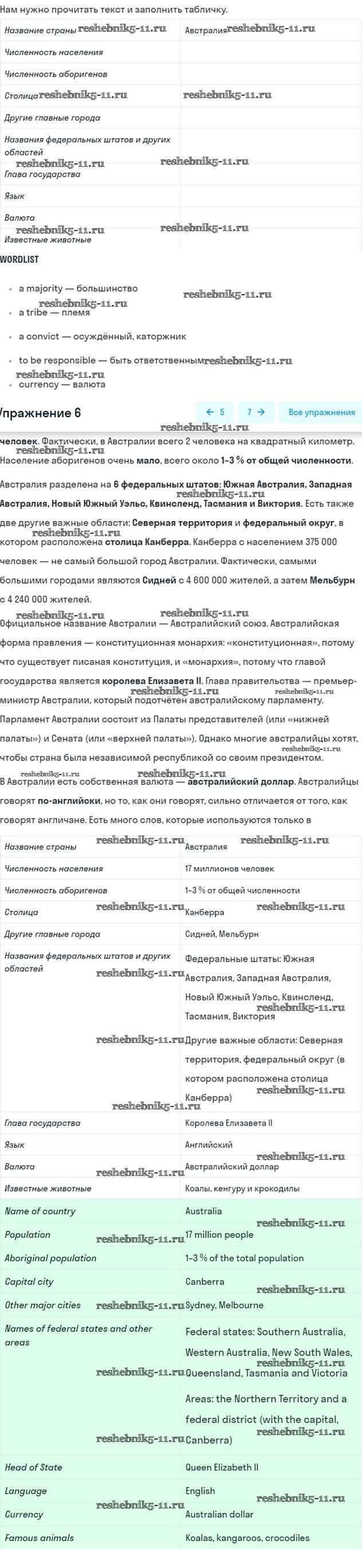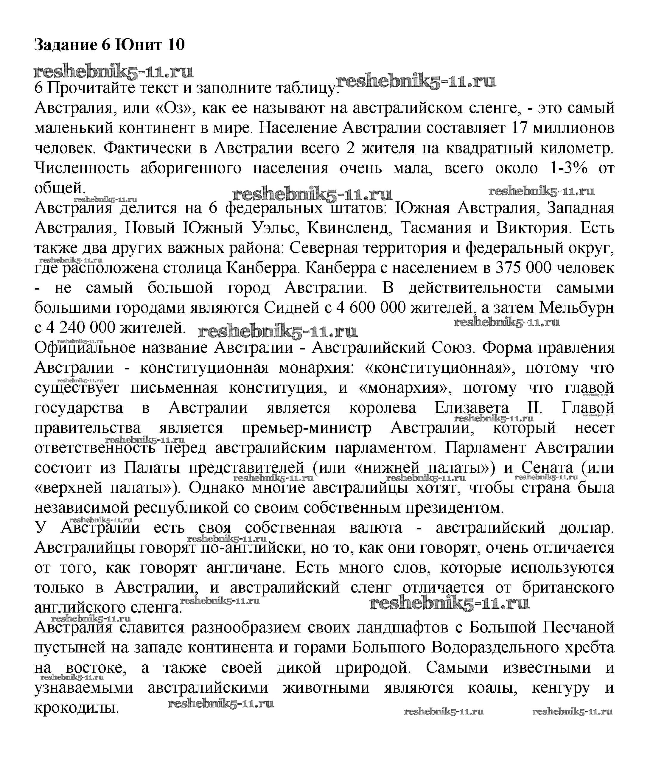 Готовая домашняя работа с ответами по Английскому языку за 7 класс Вербицкая, Гаярделли, Редли, Миндрул, Савчук Учебник Forward Часть 1, 2 Вентана-граф 2017 ФГОС - Unit 10. Discovering Australia 6