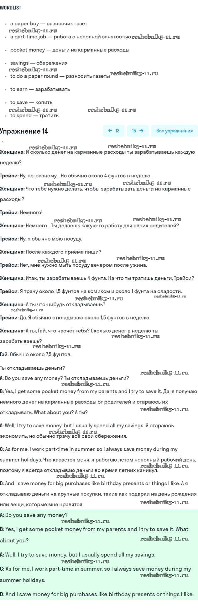 Готовая домашняя работа с ответами по Английскому языку за 7 класс Вербицкая, Гаярделли, Редли, Миндрул, Савчук Учебник Forward Часть 1, 2 Вентана-граф 2017 ФГОС - Unit 11. Work experience 14