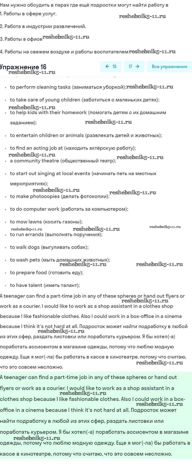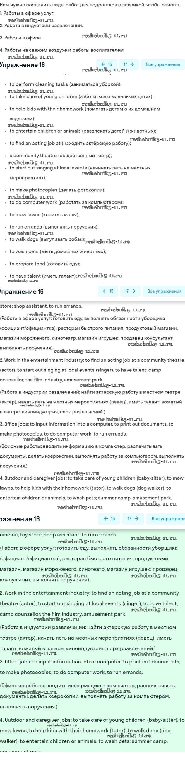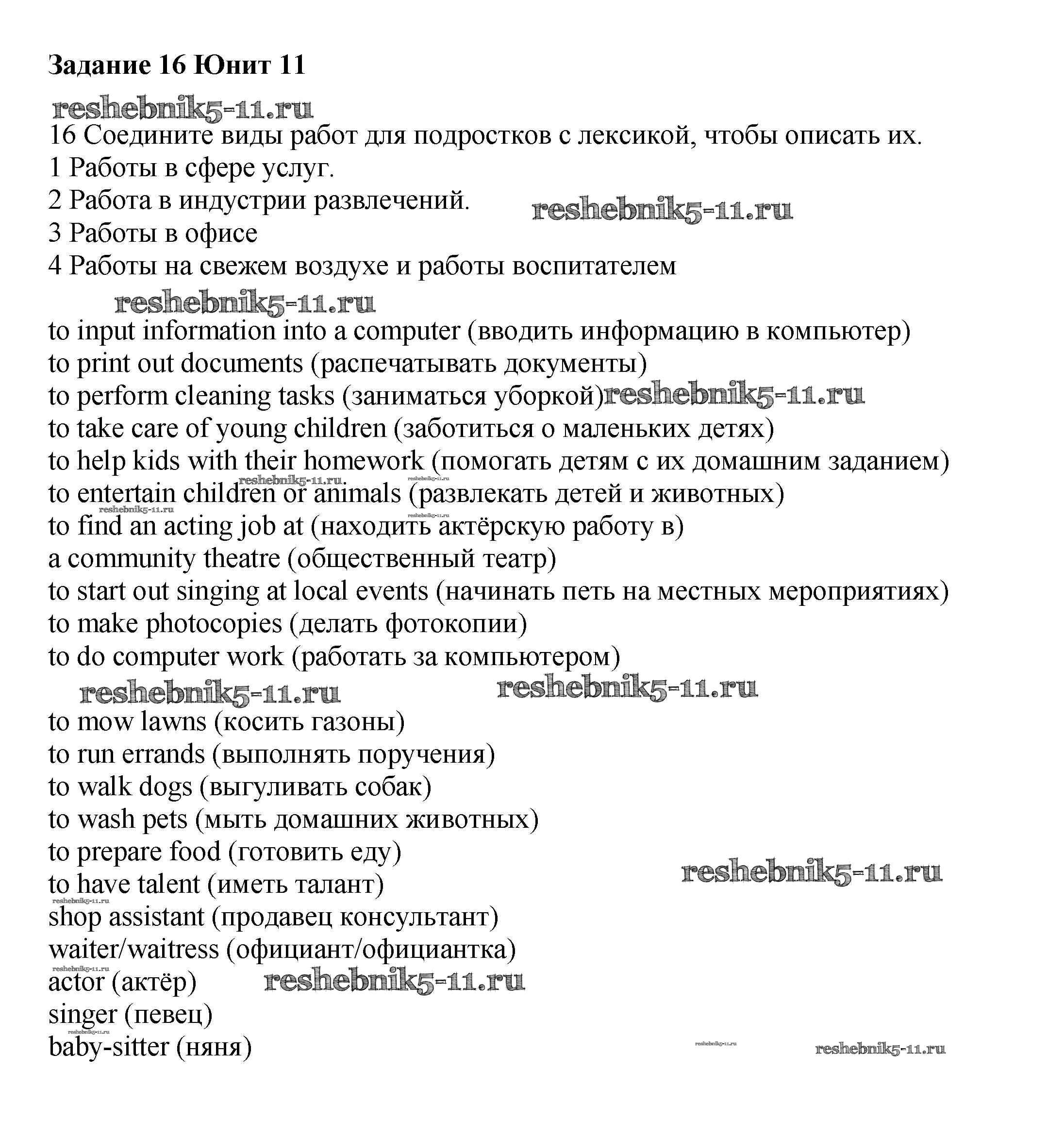Готовая домашняя работа с ответами по Английскому языку за 7 класс Вербицкая, Гаярделли, Редли, Миндрул, Савчук Учебник Forward Часть 1, 2 Вентана-граф 2017 ФГОС - Unit 11. Work experience 16