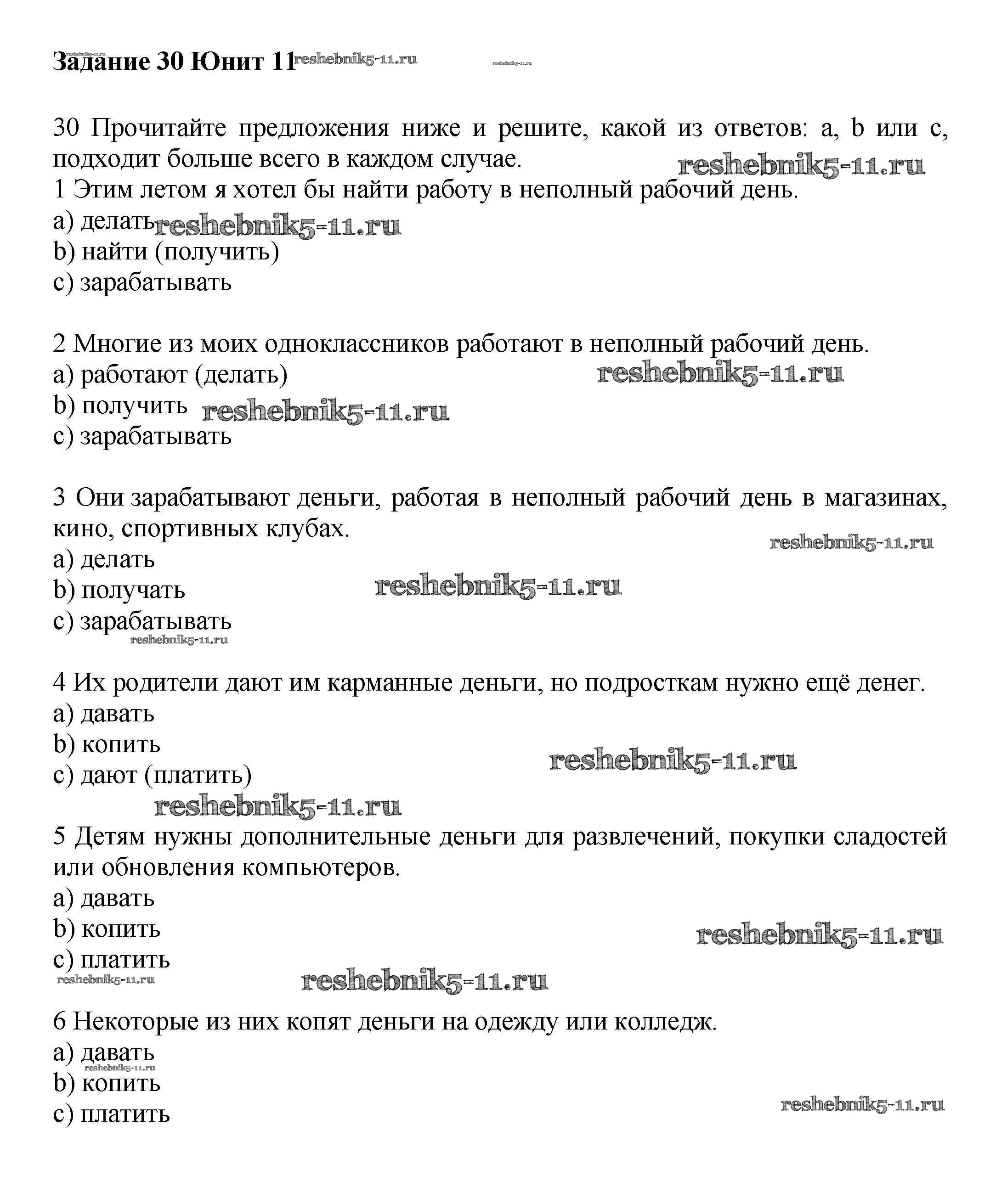 Готовая домашняя работа с ответами по Английскому языку за 7 класс Вербицкая, Гаярделли, Редли, Миндрул, Савчук Учебник Forward Часть 1, 2 Вентана-граф 2017 ФГОС - Unit 11. Work experience 30