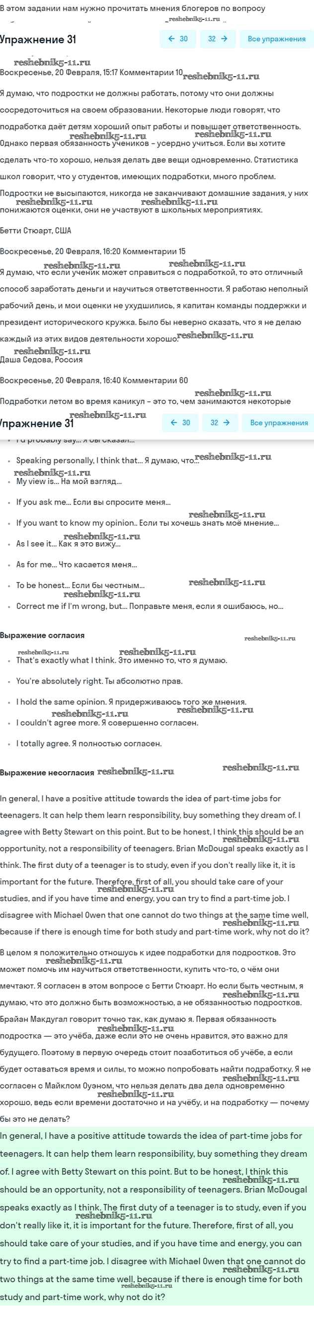 Готовая домашняя работа с ответами по Английскому языку за 7 класс Вербицкая, Гаярделли, Редли, Миндрул, Савчук Учебник Forward Часть 1, 2 Вентана-граф 2017 ФГОС - Unit 11. Work experience 31