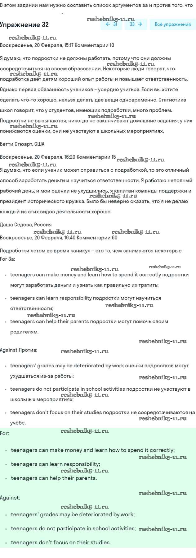 Готовая домашняя работа с ответами по Английскому языку за 7 класс Вербицкая, Гаярделли, Редли, Миндрул, Савчук Учебник Forward Часть 1, 2 Вентана-граф 2017 ФГОС - Unit 11. Work experience 32