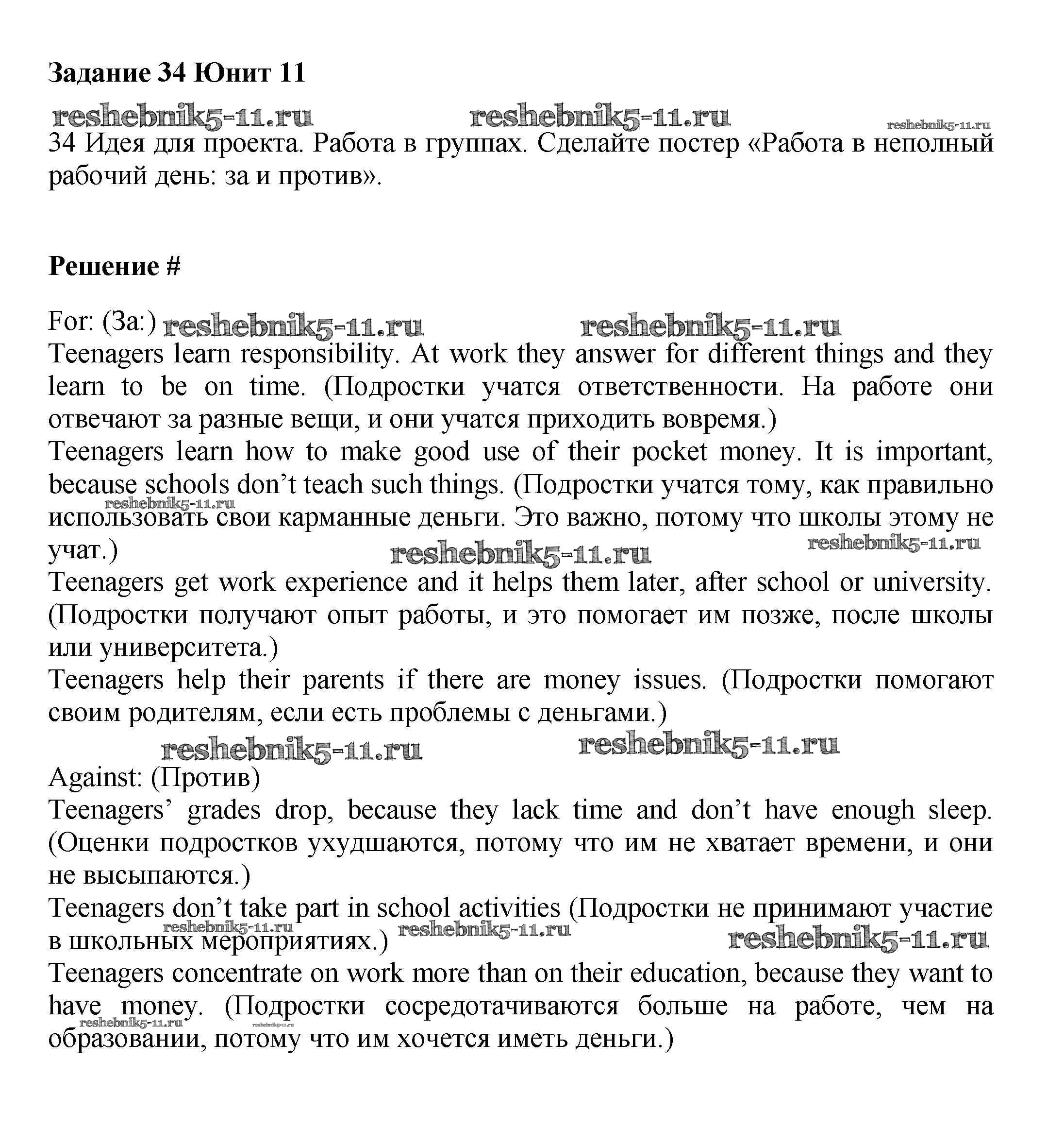 Готовая домашняя работа с ответами по Английскому языку за 7 класс Вербицкая, Гаярделли, Редли, Миндрул, Савчук Учебник Forward Часть 1, 2 Вентана-граф 2017 ФГОС - Unit 11. Work experience 34