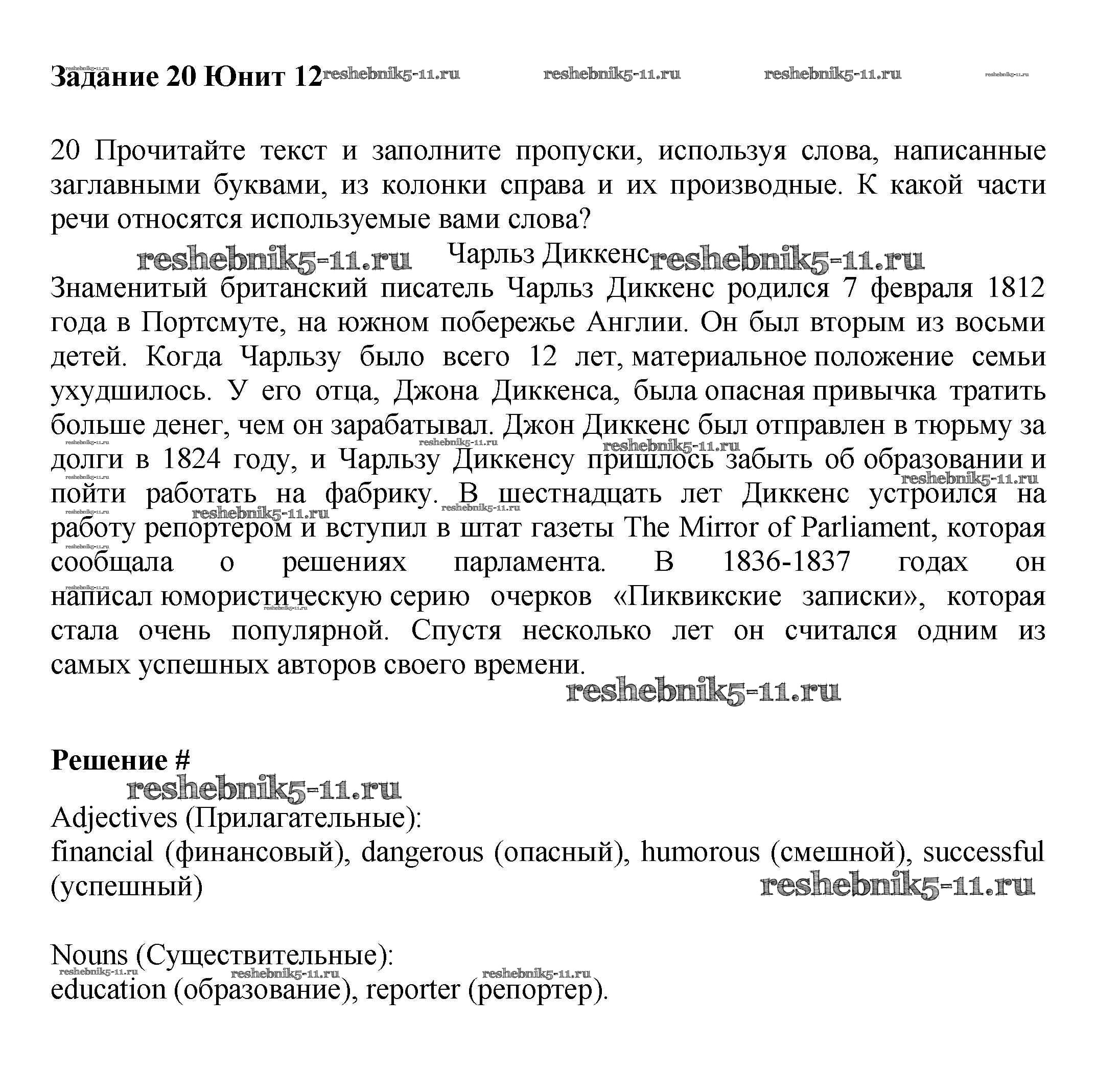 Готовая домашняя работа с ответами по Английскому языку за 7 класс Вербицкая, Гаярделли, Редли, Миндрул, Савчук Учебник Forward Часть 1, 2 Вентана-граф 2017 ФГОС - Unit 12. Social issues 20