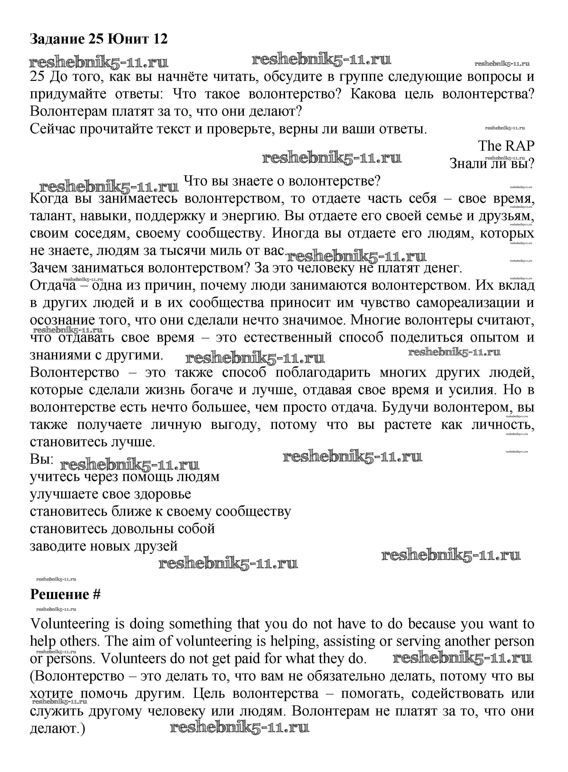 Готовая домашняя работа с ответами по Английскому языку за 7 класс Вербицкая, Гаярделли, Редли, Миндрул, Савчук Учебник Forward Часть 1, 2 Вентана-граф 2017 ФГОС - Unit 12. Social issues 25