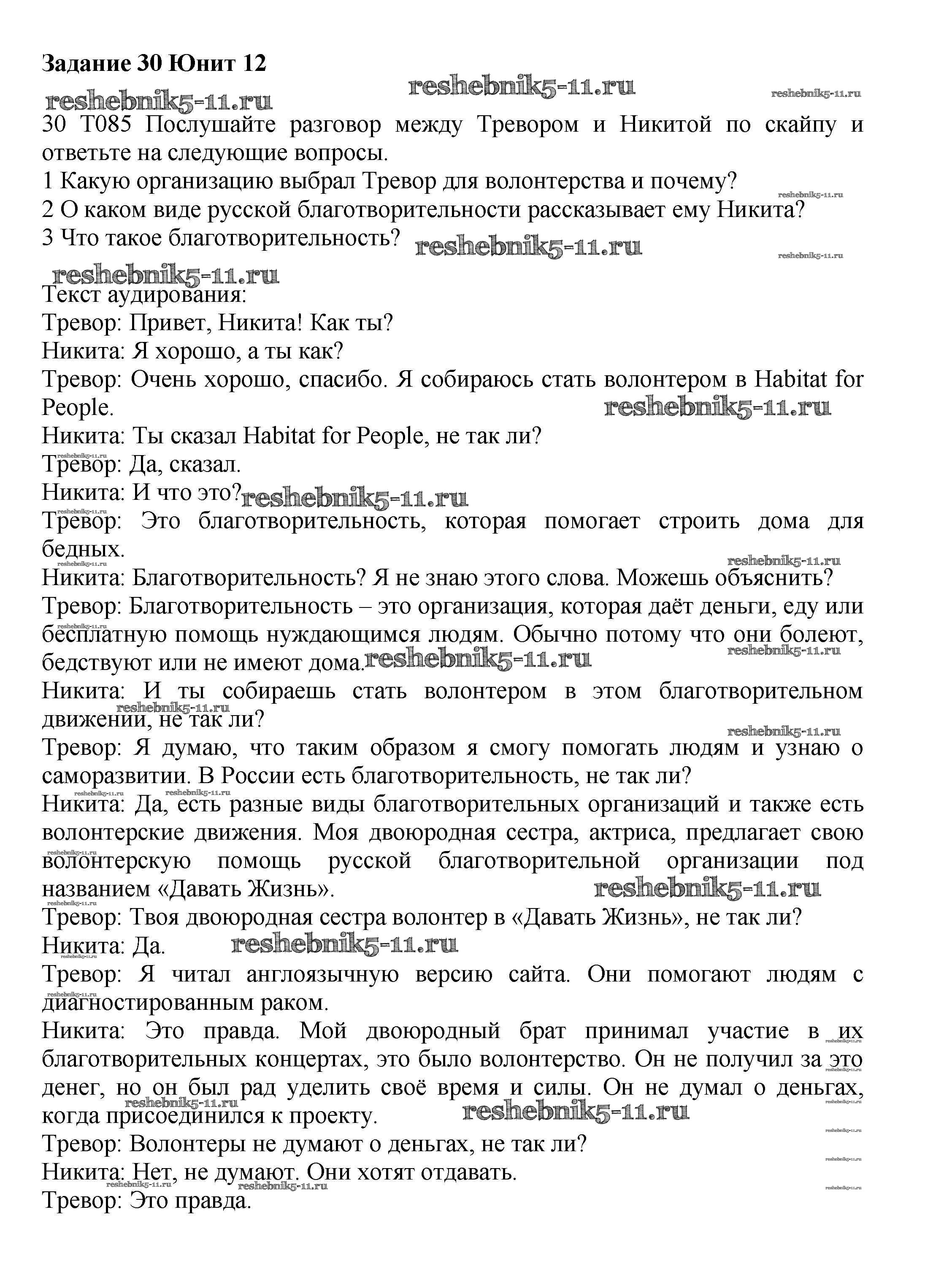 Готовая домашняя работа с ответами по Английскому языку за 7 класс Вербицкая, Гаярделли, Редли, Миндрул, Савчук Учебник Forward Часть 1, 2 Вентана-граф 2017 ФГОС - Unit 12. Social issues 30