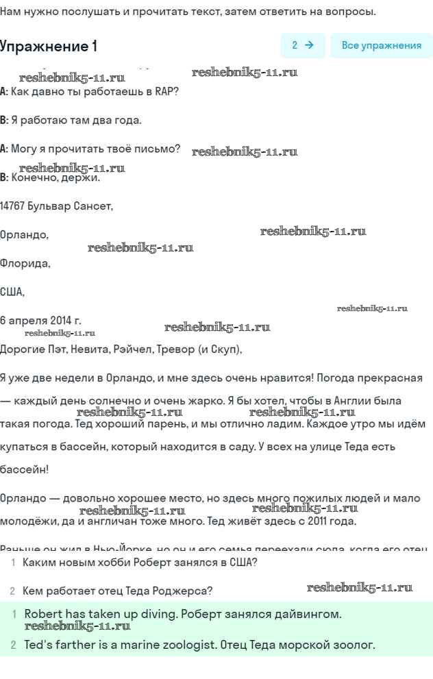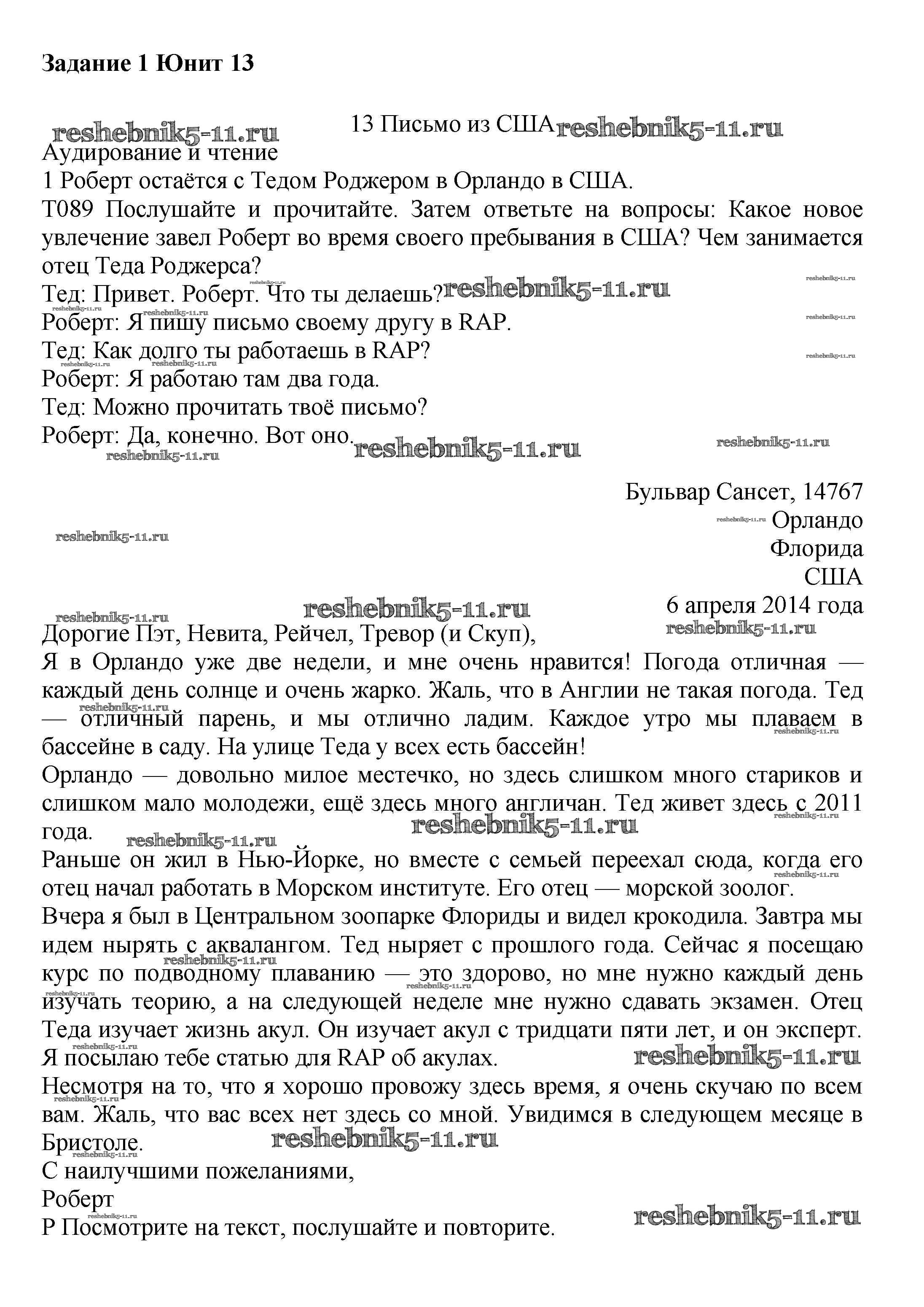 Готовая домашняя работа с ответами по Английскому языку за 7 класс Вербицкая, Гаярделли, Редли, Миндрул, Савчук Учебник Forward Часть 1, 2 Вентана-граф 2017 ФГОС - Unit 13. A letter from the USA 1