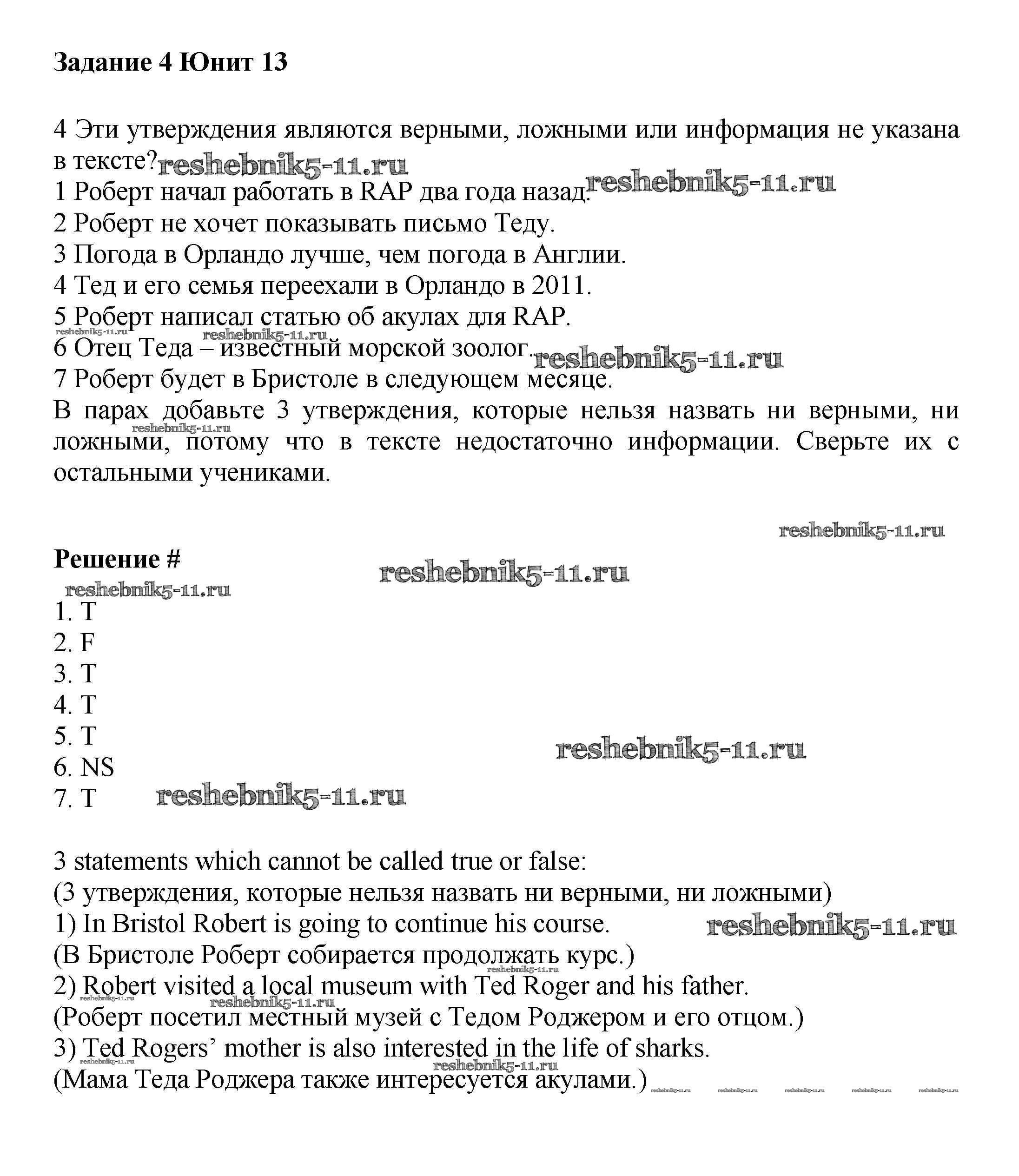 Готовая домашняя работа с ответами по Английскому языку за 7 класс Вербицкая, Гаярделли, Редли, Миндрул, Савчук Учебник Forward Часть 1, 2 Вентана-граф 2017 ФГОС - Unit 13. A letter from the USA 4