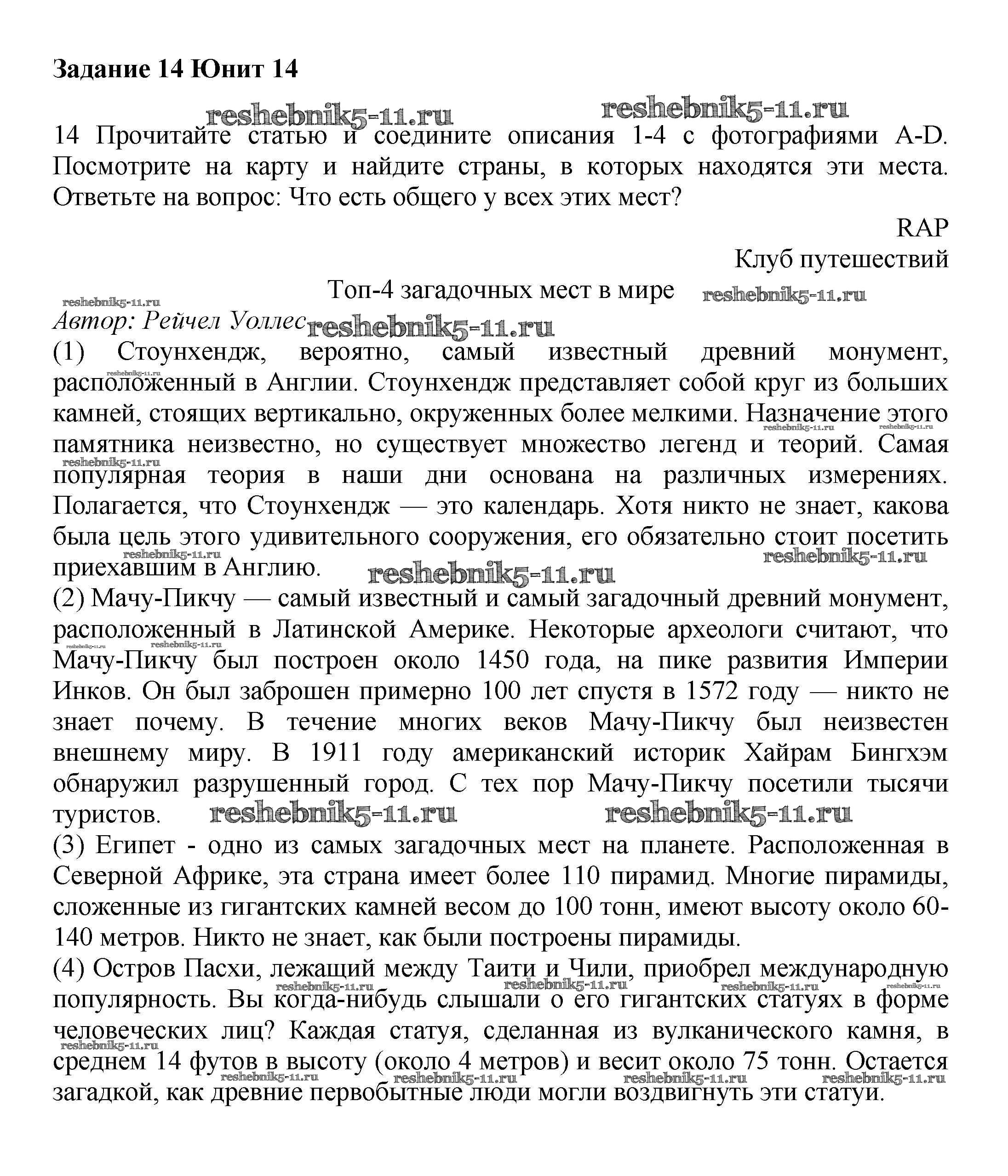 Готовая домашняя работа с ответами по Английскому языку за 7 класс Вербицкая, Гаярделли, Редли, Миндрул, Савчук Учебник Forward Часть 1, 2 Вентана-граф 2017 ФГОС - Unit 14. World wise 14