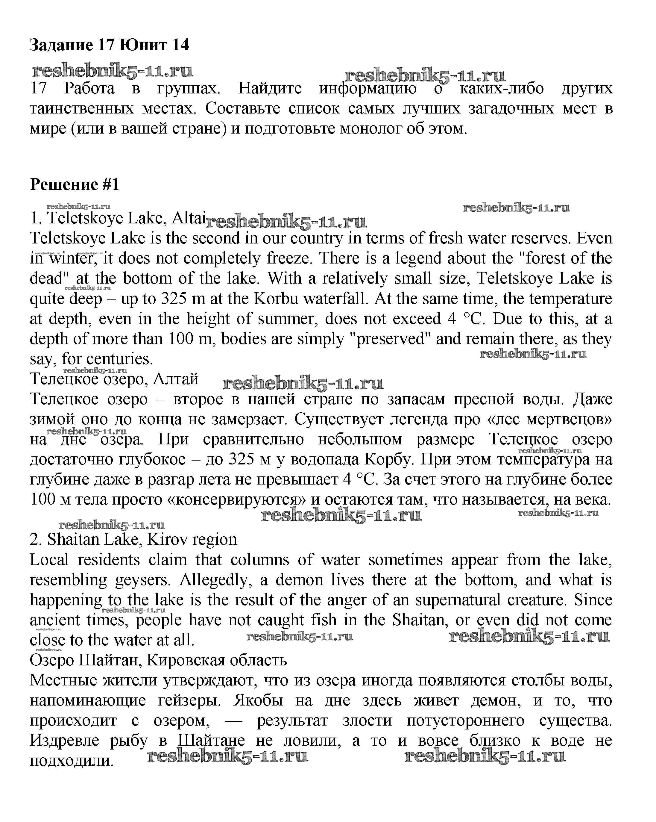Готовая домашняя работа с ответами по Английскому языку за 7 класс Вербицкая, Гаярделли, Редли, Миндрул, Савчук Учебник Forward Часть 1, 2 Вентана-граф 2017 ФГОС - Unit 14. World wise 17