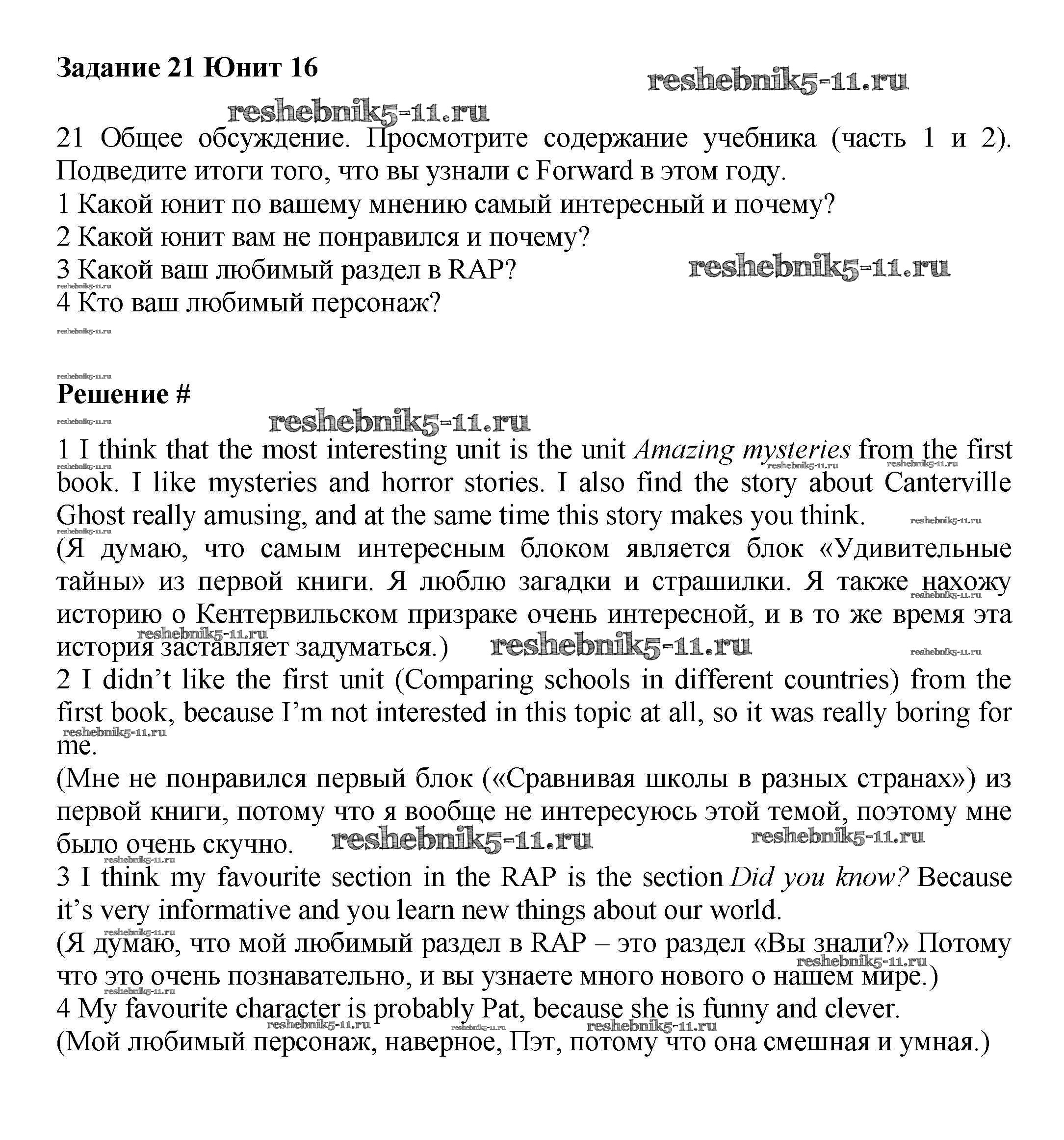 Английский язык за 7 класс Вербицкая Учебник Forward Вентана-граф unit 16 21