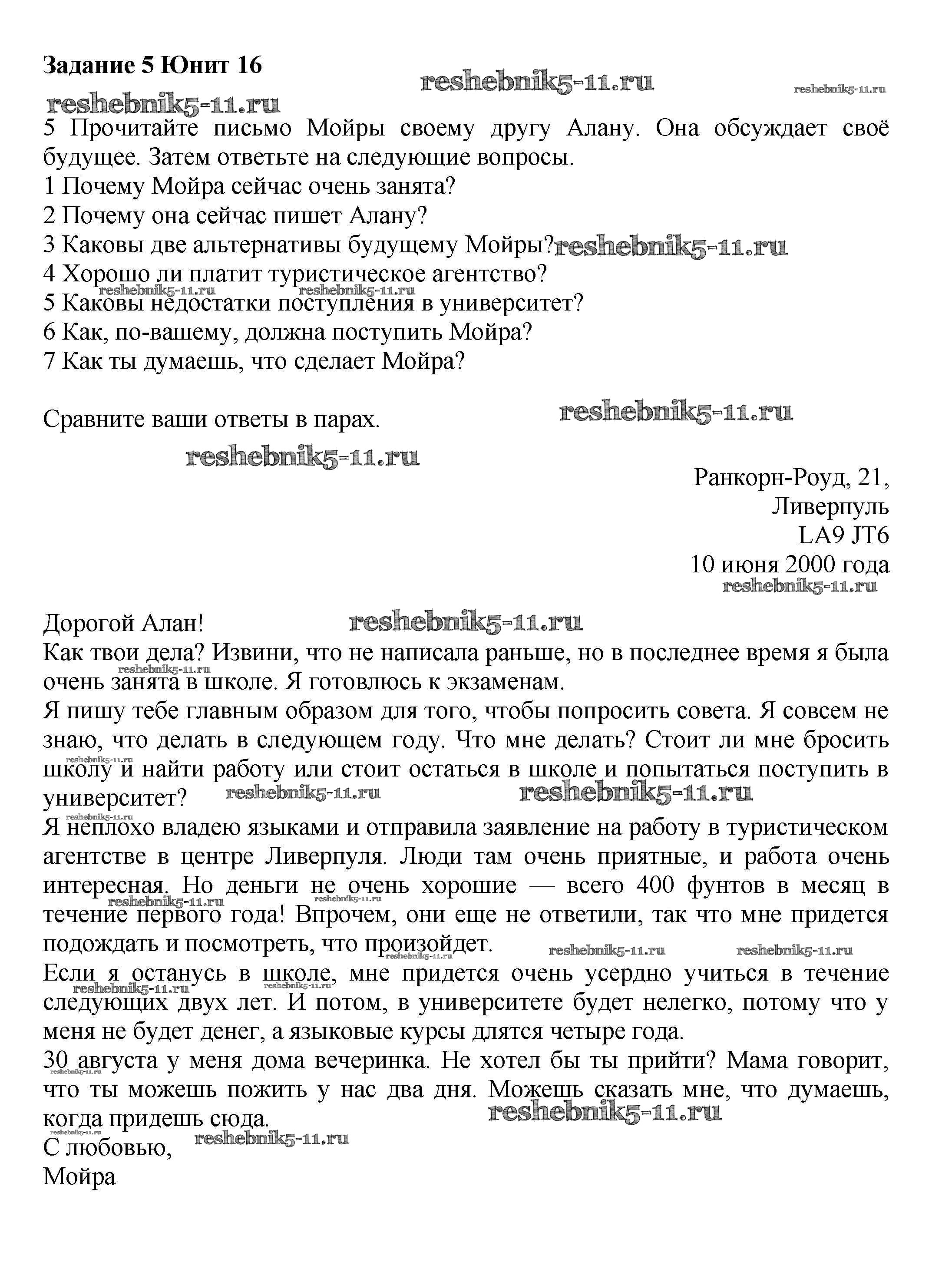 Английский язык за 7 класс Вербицкая Учебник Forward Вентана-граф unit 16 5