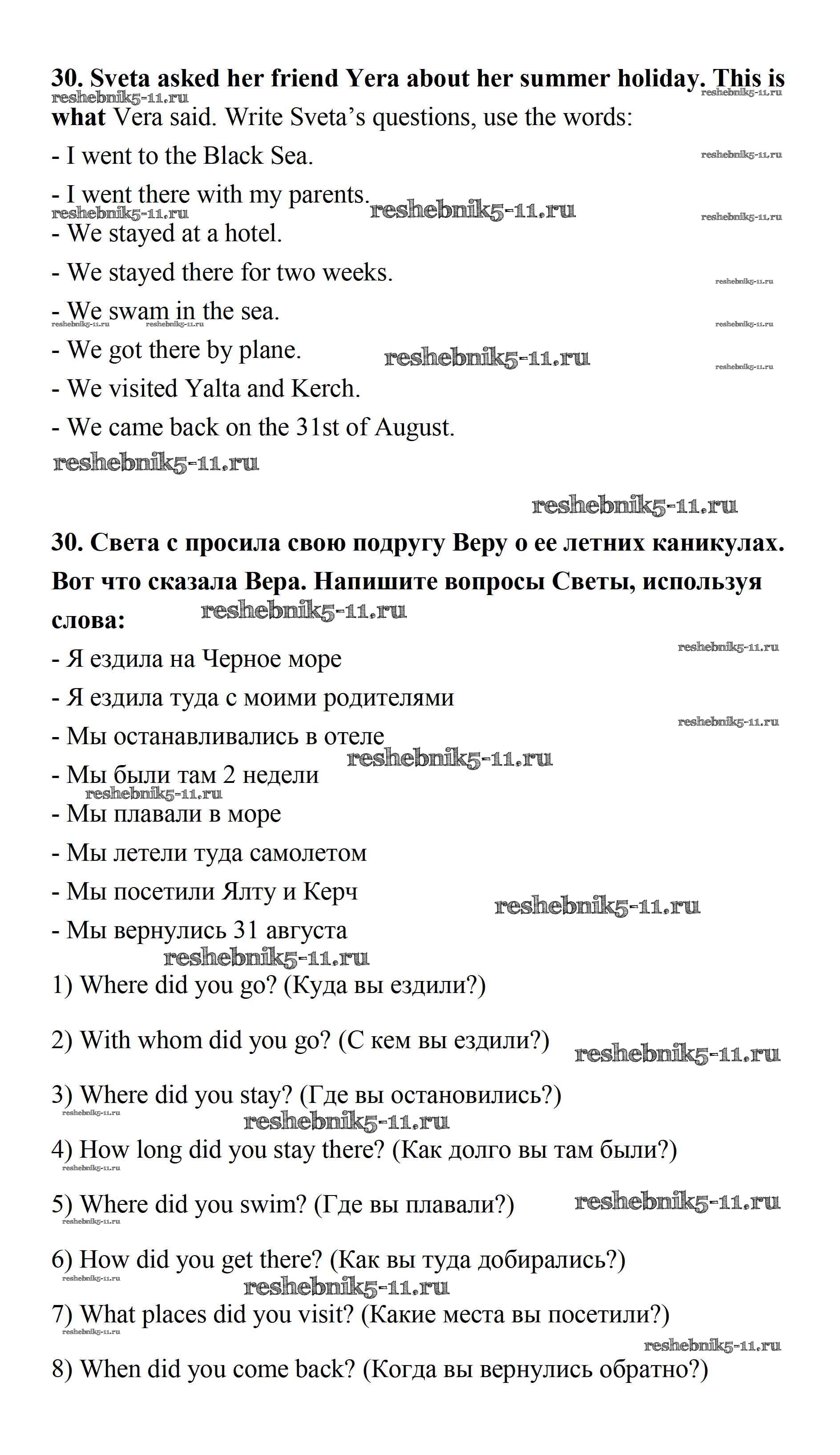 Готовая домашняя работа с ответами по Английскому языку за 7 класс Афанасьева, Михеева Рабочая тетрадь Новый курс Часть 1, 2 Дрофа 2017 ФГОС - Unit 1 30