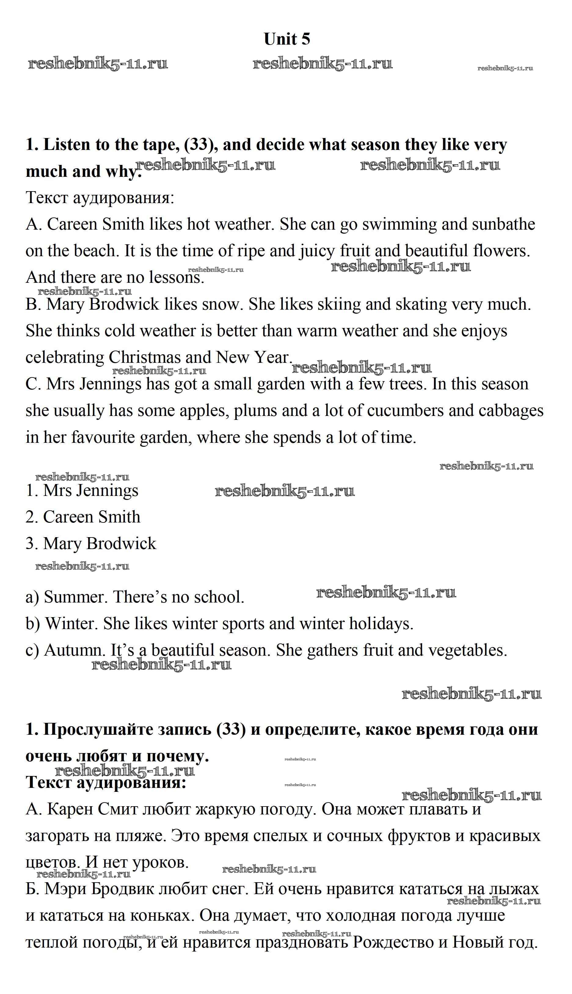Готовая домашняя работа с ответами по Английскому языку за 7 класс Афанасьева, Михеева Рабочая тетрадь Новый курс Часть 1, 2 Дрофа 2017 ФГОС - Unit 5 1