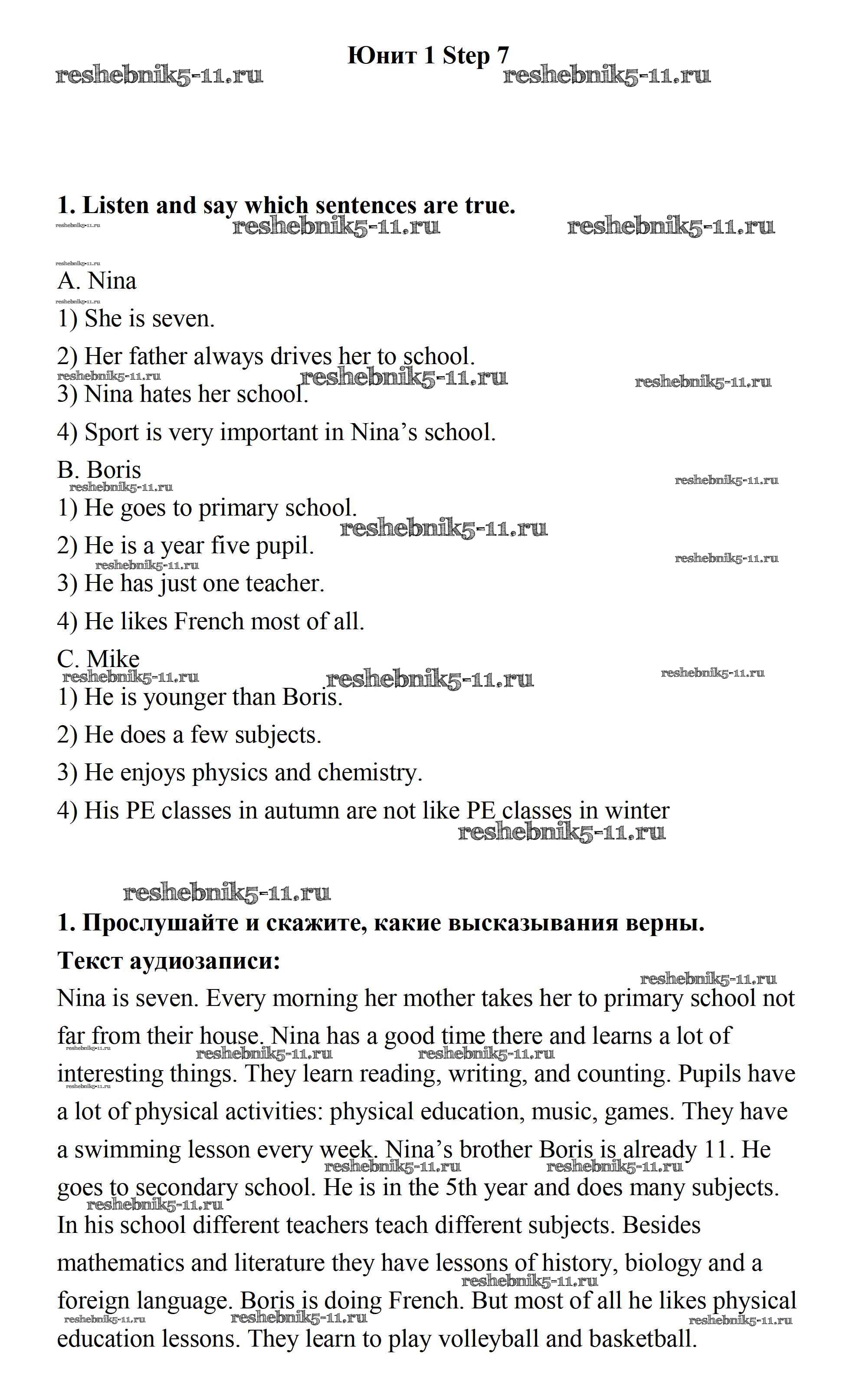 Готовая домашняя работа с ответами по Английскому языку за 7 класс Афанасьева, Михеева, Баранова Учебник Rainbow Часть 1, 2 Дрофа 2019 ФГОС - Step 7 1