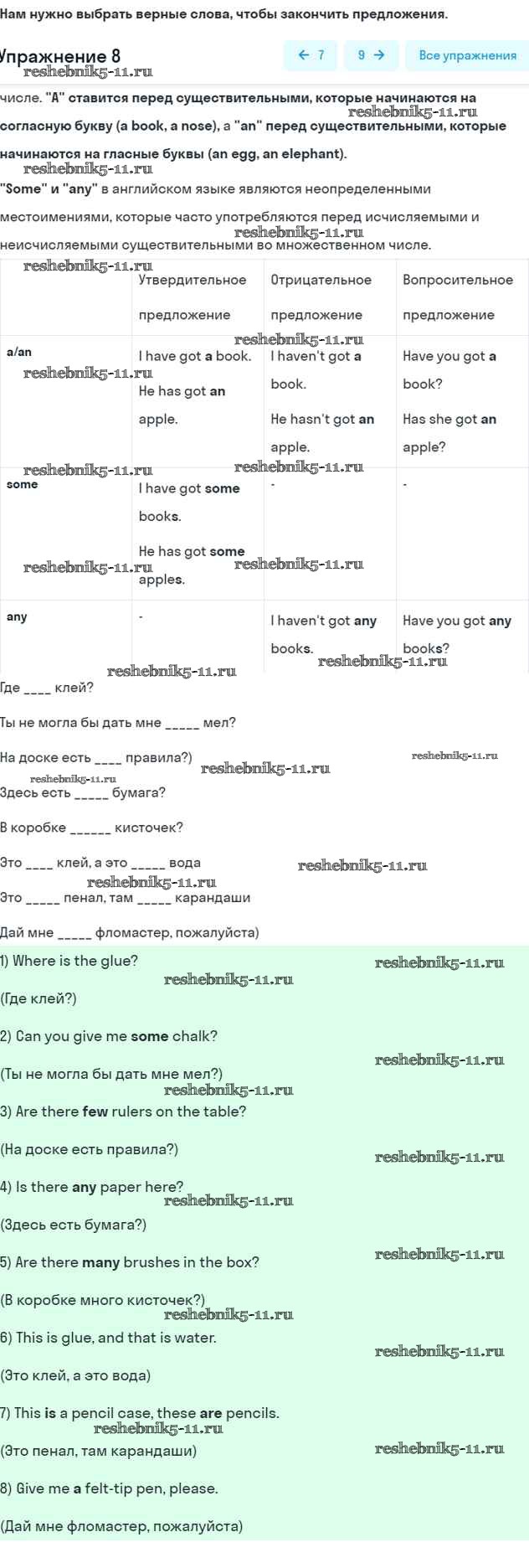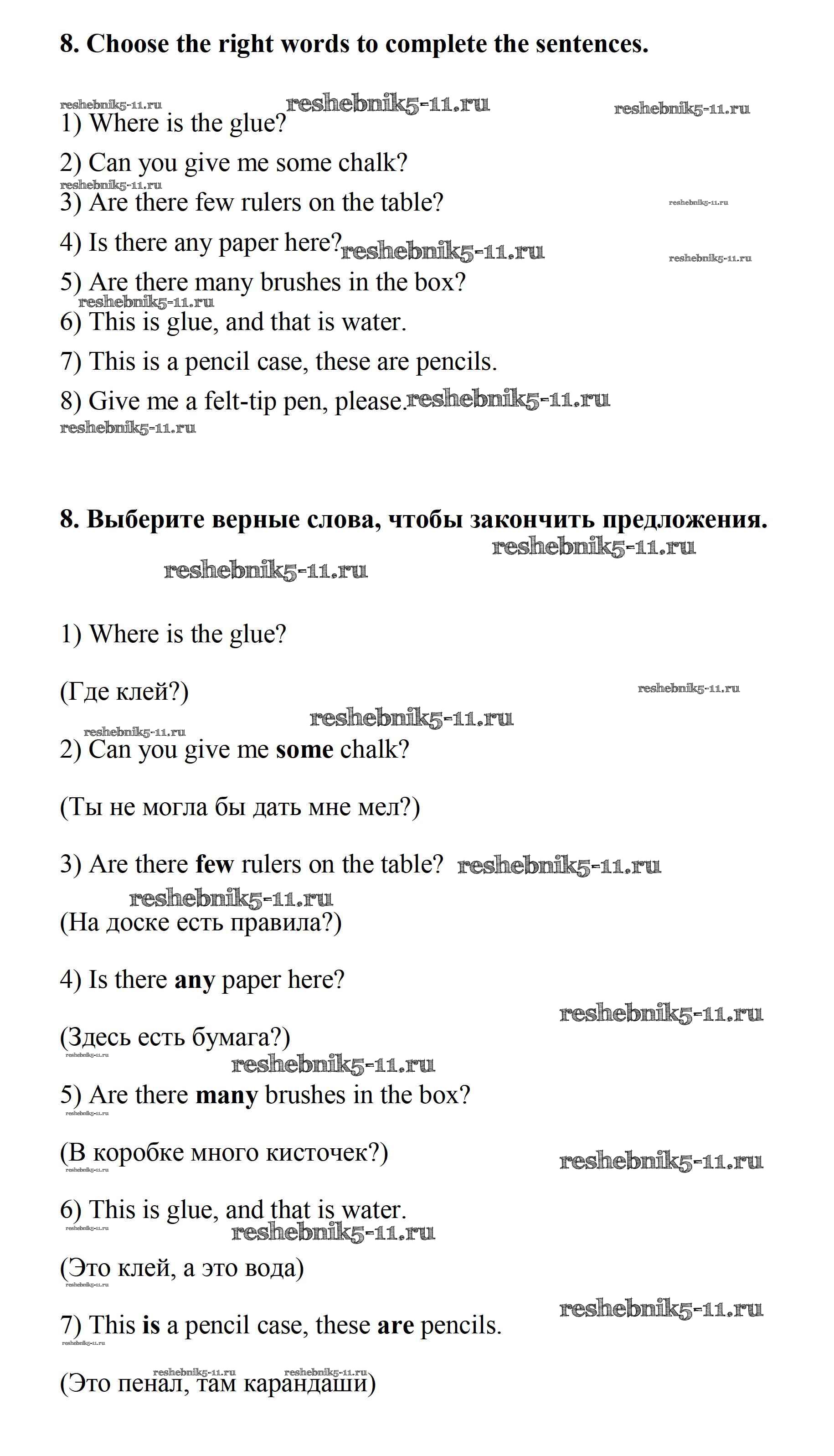 Готовая домашняя работа с ответами по Английскому языку за 7 класс Афанасьева, Михеева, Баранова Учебник Rainbow Часть 1, 2 Дрофа 2019 ФГОС - Step 2 8