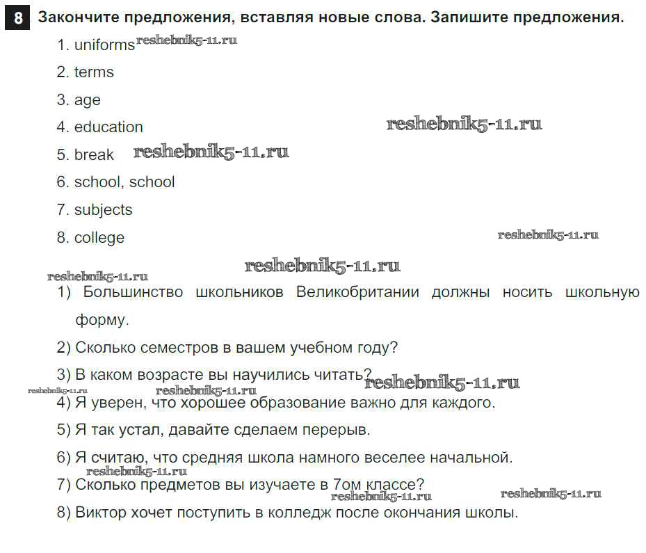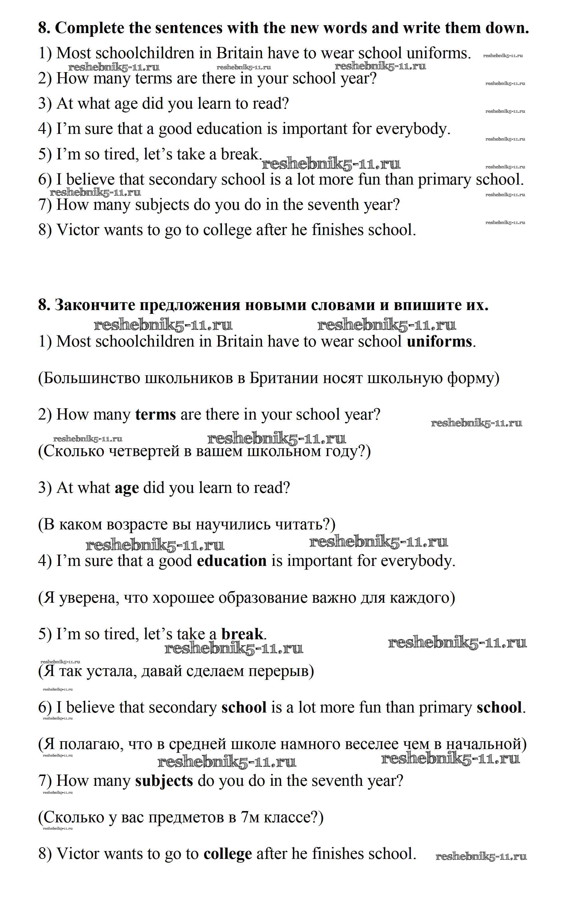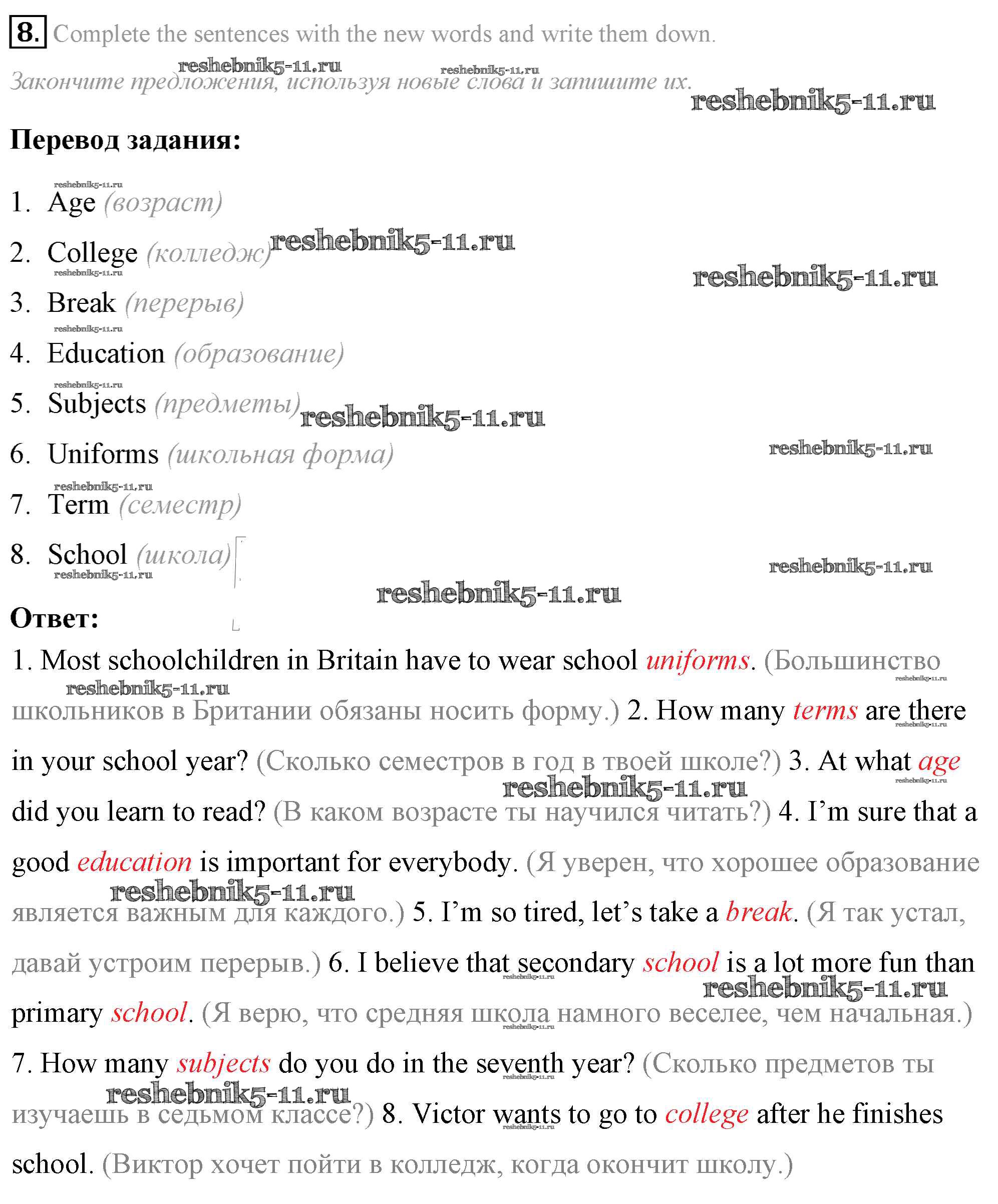 Готовая домашняя работа с ответами по Английскому языку за 7 класс Афанасьева, Михеева, Баранова Учебник Rainbow Часть 1, 2 Дрофа 2019 ФГОС - Step 4 8