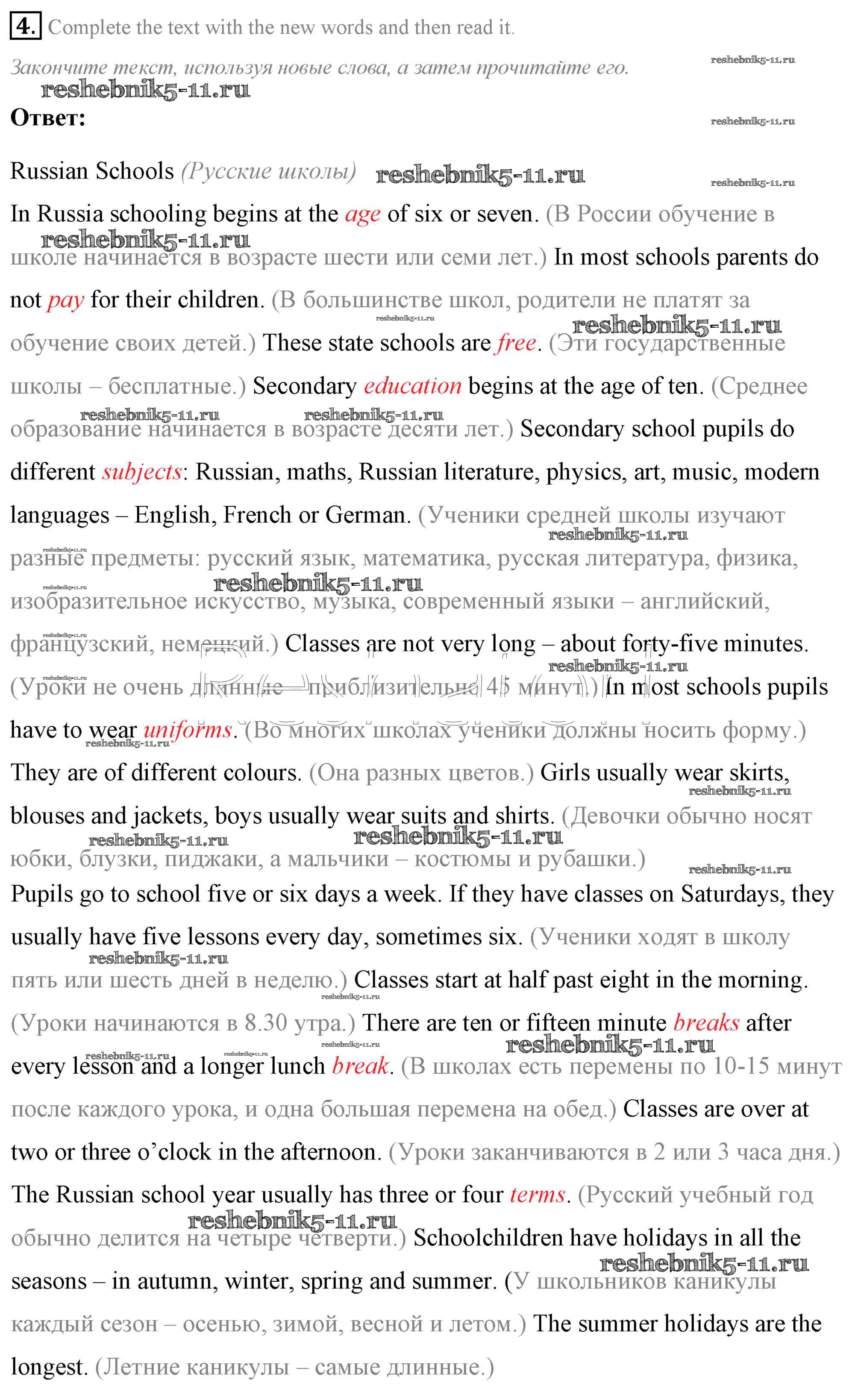 Готовая домашняя работа с ответами по Английскому языку за 7 класс Афанасьева, Михеева, Баранова Учебник Rainbow Часть 1, 2 Дрофа 2019 ФГОС - Step 6 4