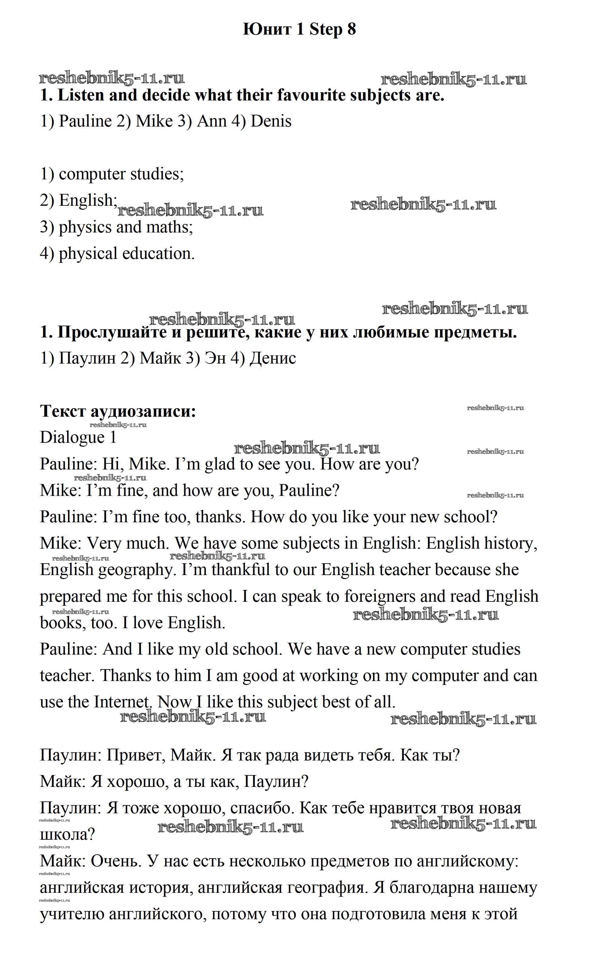 Готовая домашняя работа с ответами по Английскому языку за 7 класс Афанасьева, Михеева, Баранова Учебник Rainbow Часть 1, 2 Дрофа 2019 ФГОС - Step 8 1