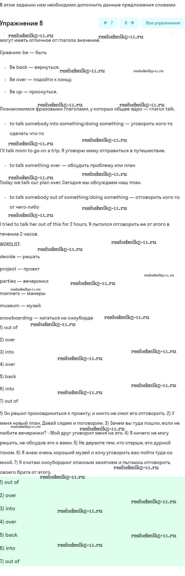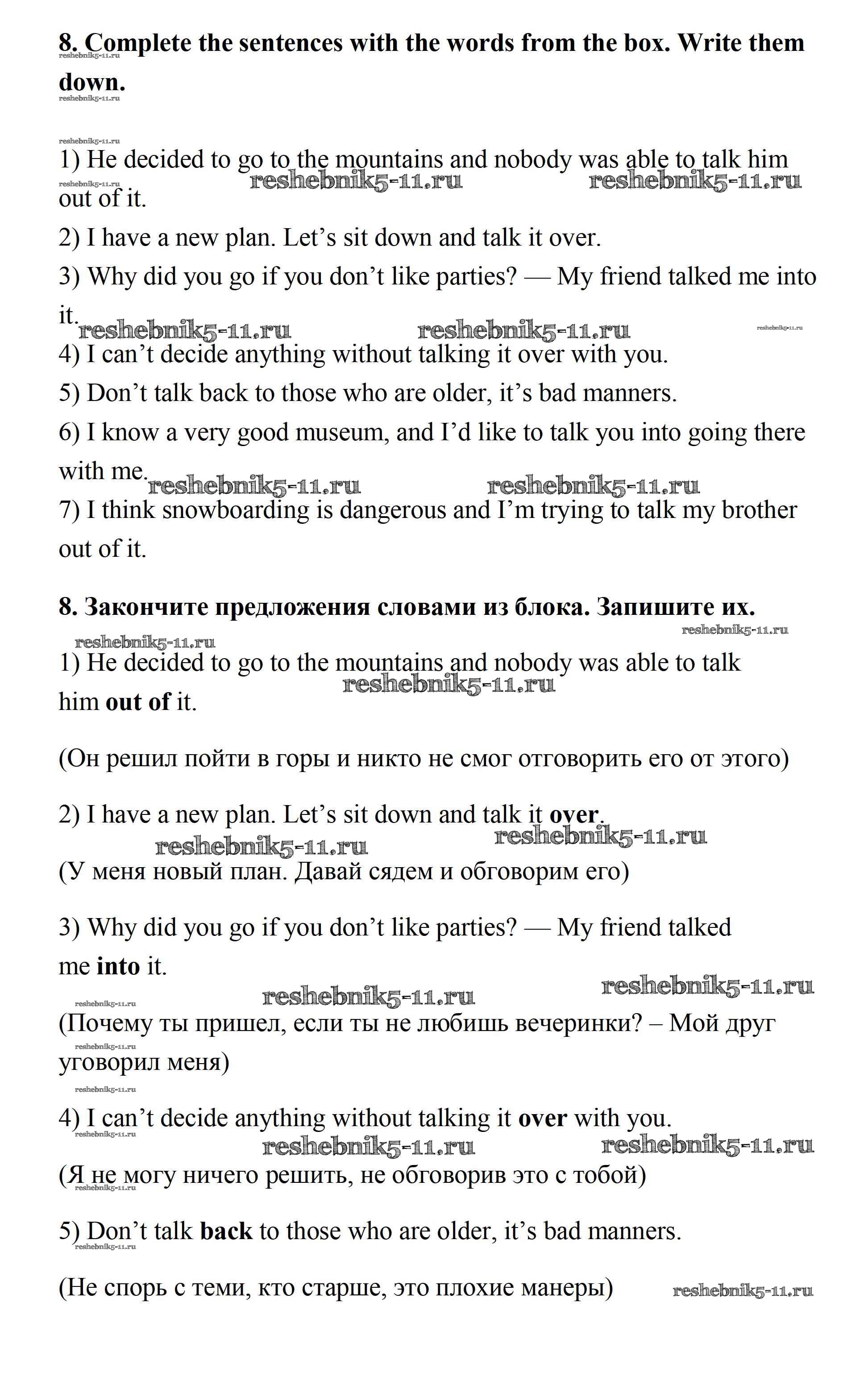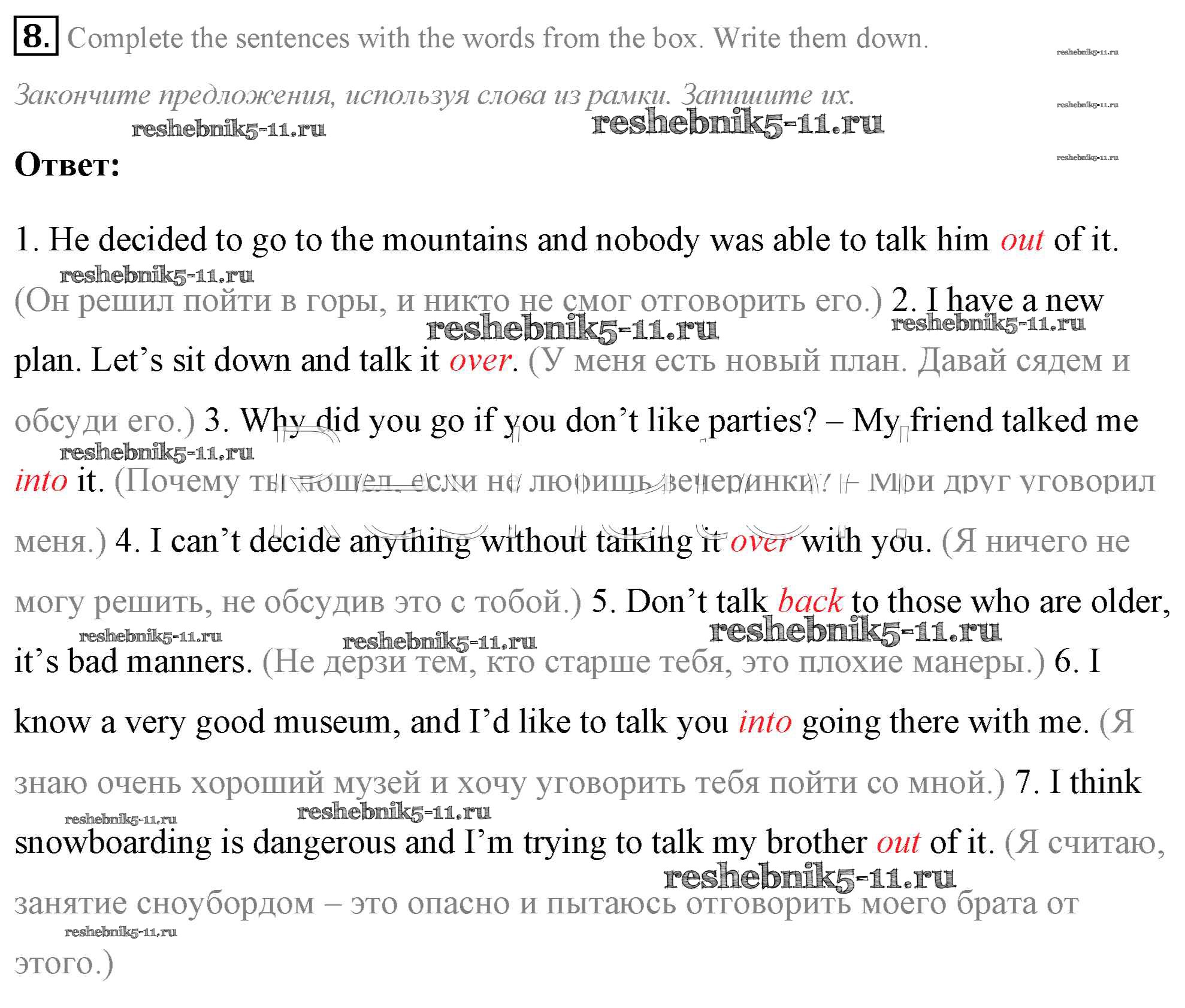Готовая домашняя работа с ответами по Английскому языку за 7 класс Афанасьева, Михеева, Баранова Учебник Rainbow Часть 1, 2 Дрофа 2019 ФГОС - Step 8 8