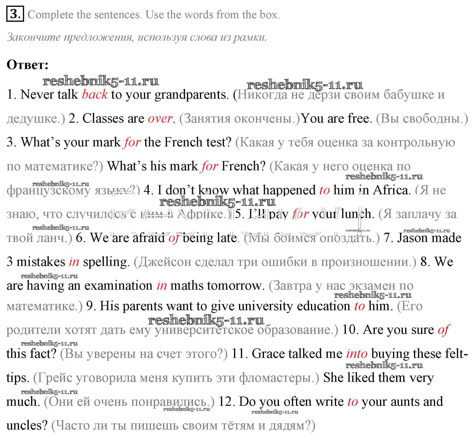 Готовая домашняя работа с ответами по Английскому языку за 7 класс Афанасьева, Михеева, Баранова Учебник Rainbow Часть 1, 2 Дрофа 2019 ФГОС - Step 9 Consolidation Class: 3