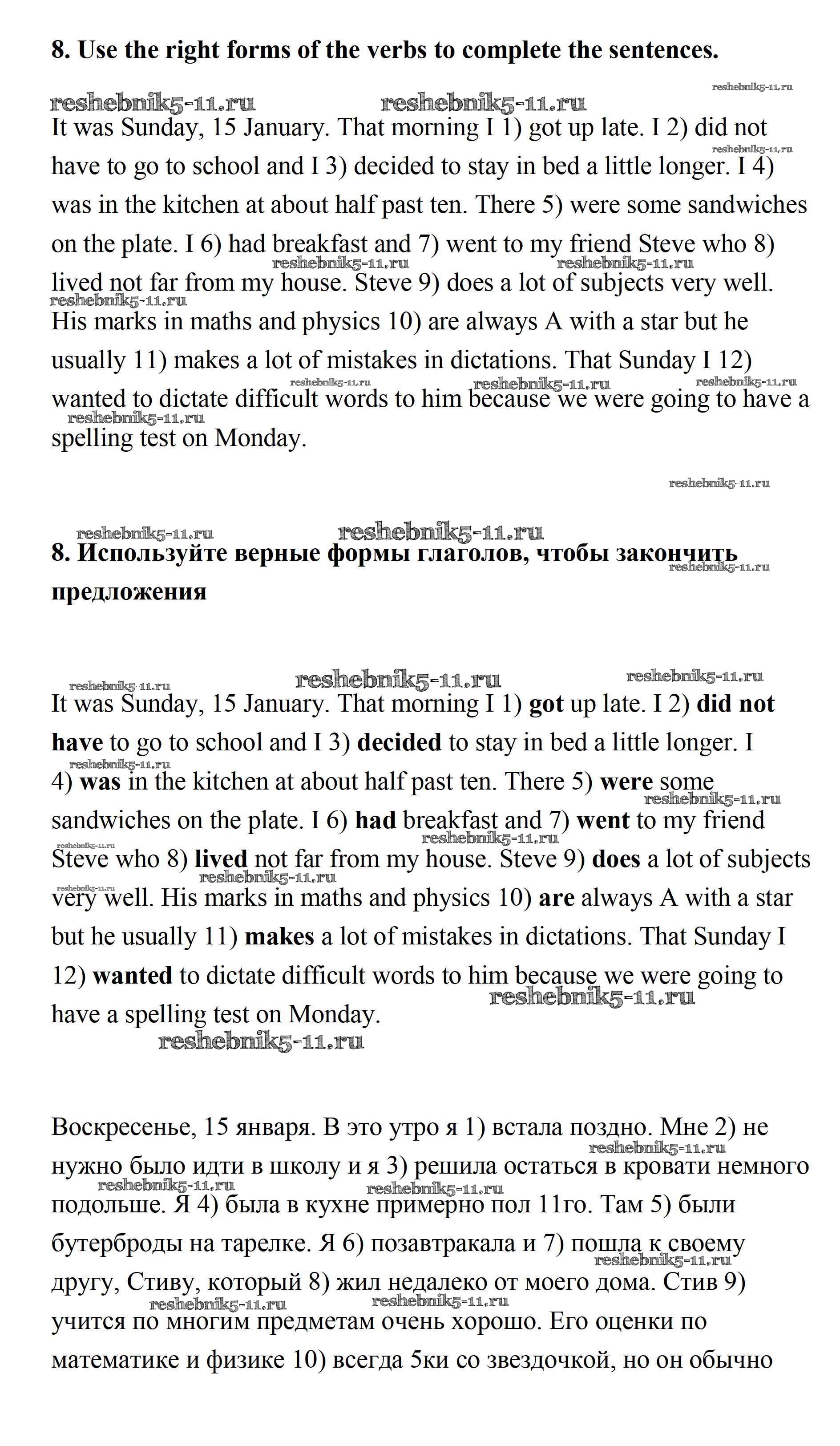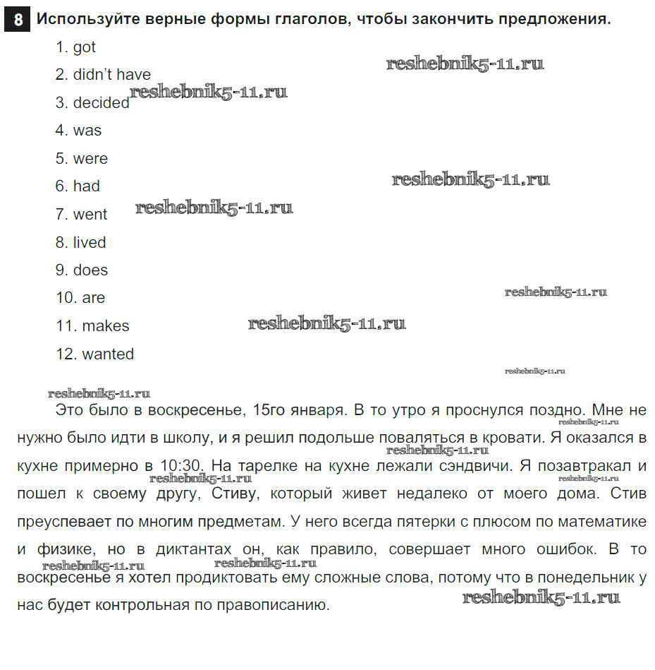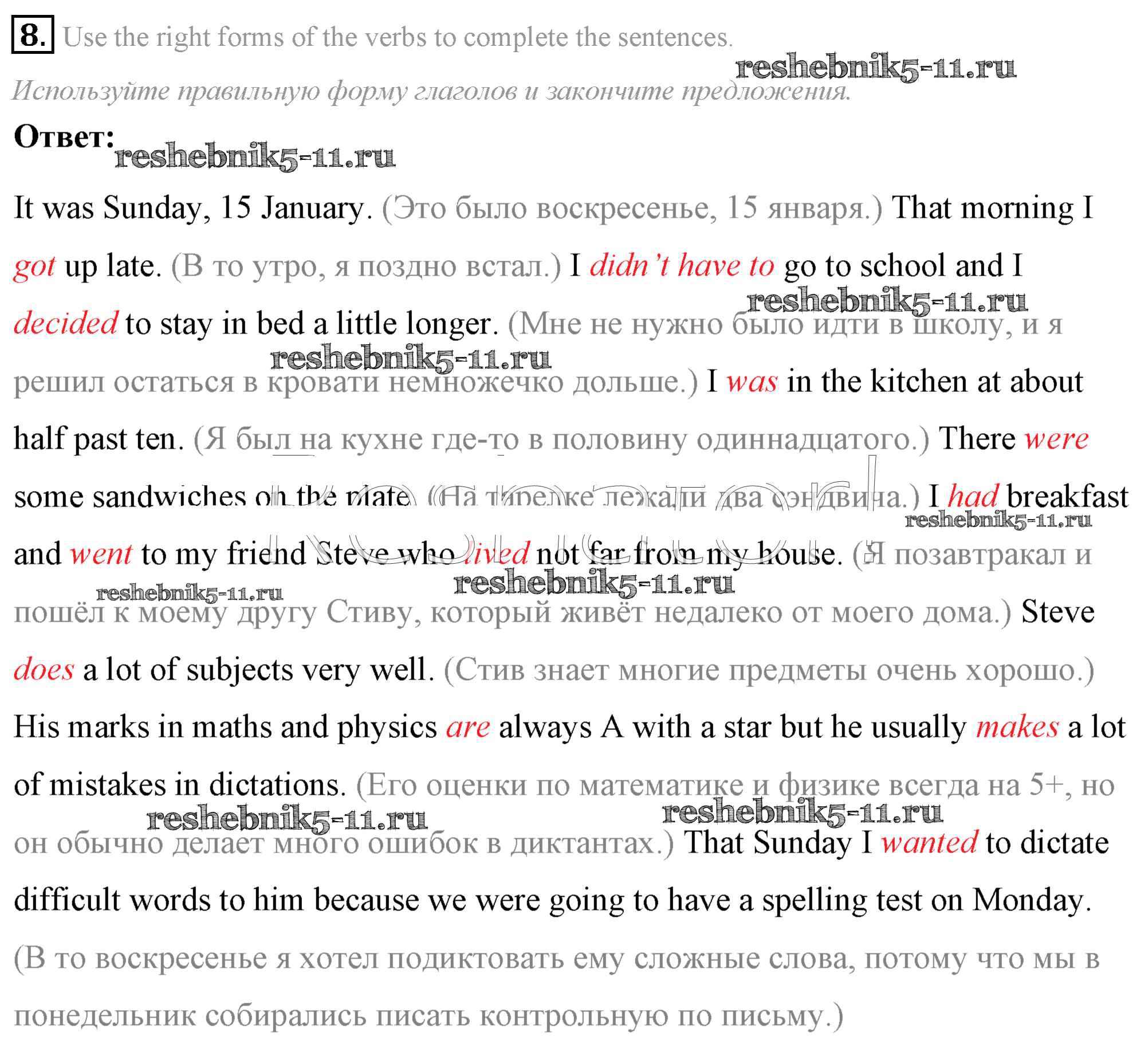 Готовая домашняя работа с ответами по Английскому языку за 7 класс Афанасьева, Михеева, Баранова Учебник Rainbow Часть 1, 2 Дрофа 2019 ФГОС - Step 9 Consolidation Class: 8