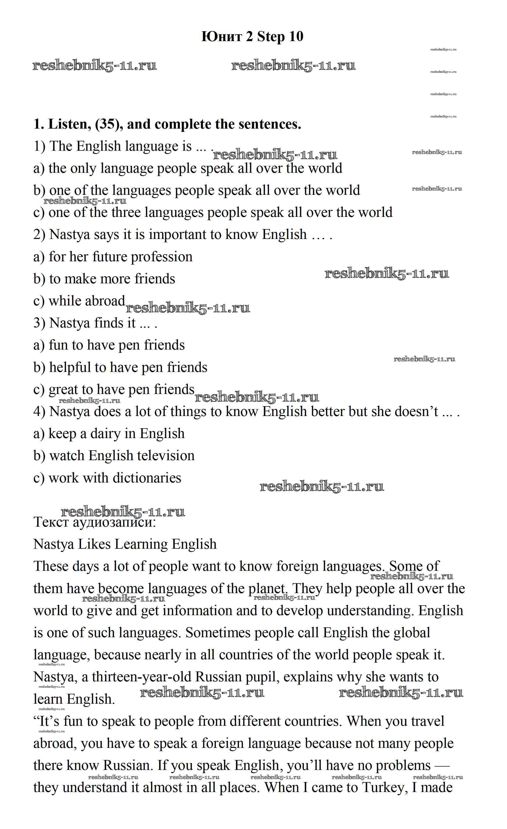 Готовая домашняя работа с ответами по Английскому языку за 7 класс Афанасьева, Михеева, Баранова Учебник Rainbow Часть 1, 2 Дрофа 2019 ФГОС - Step 10 Test Yourself: 1