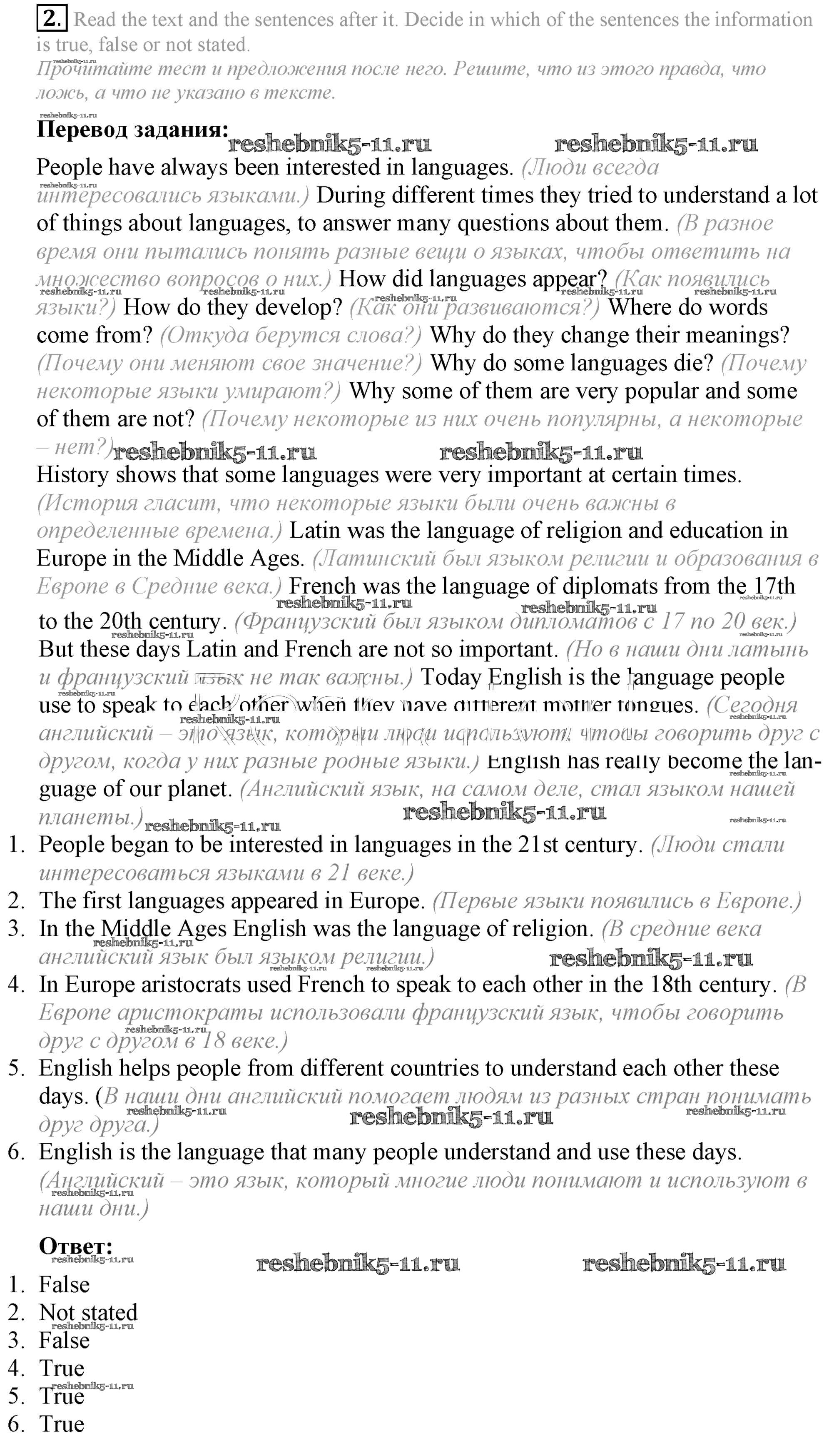 Готовая домашняя работа с ответами по Английскому языку за 7 класс Афанасьева, Михеева, Баранова Учебник Rainbow Часть 1, 2 Дрофа 2019 ФГОС - Step 10 Test Yourself: 2