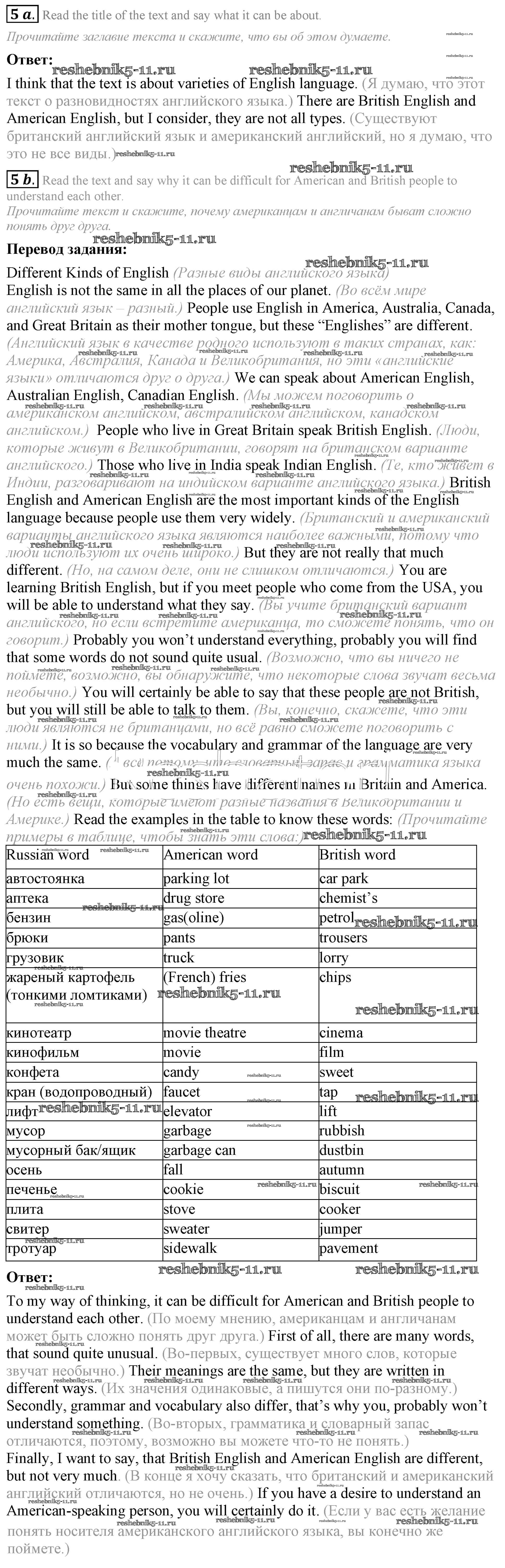 Готовая домашняя работа с ответами по Английскому языку за 7 класс Афанасьева, Михеева, Баранова Учебник Rainbow Часть 1, 2 Дрофа 2019 ФГОС - Step 5 5