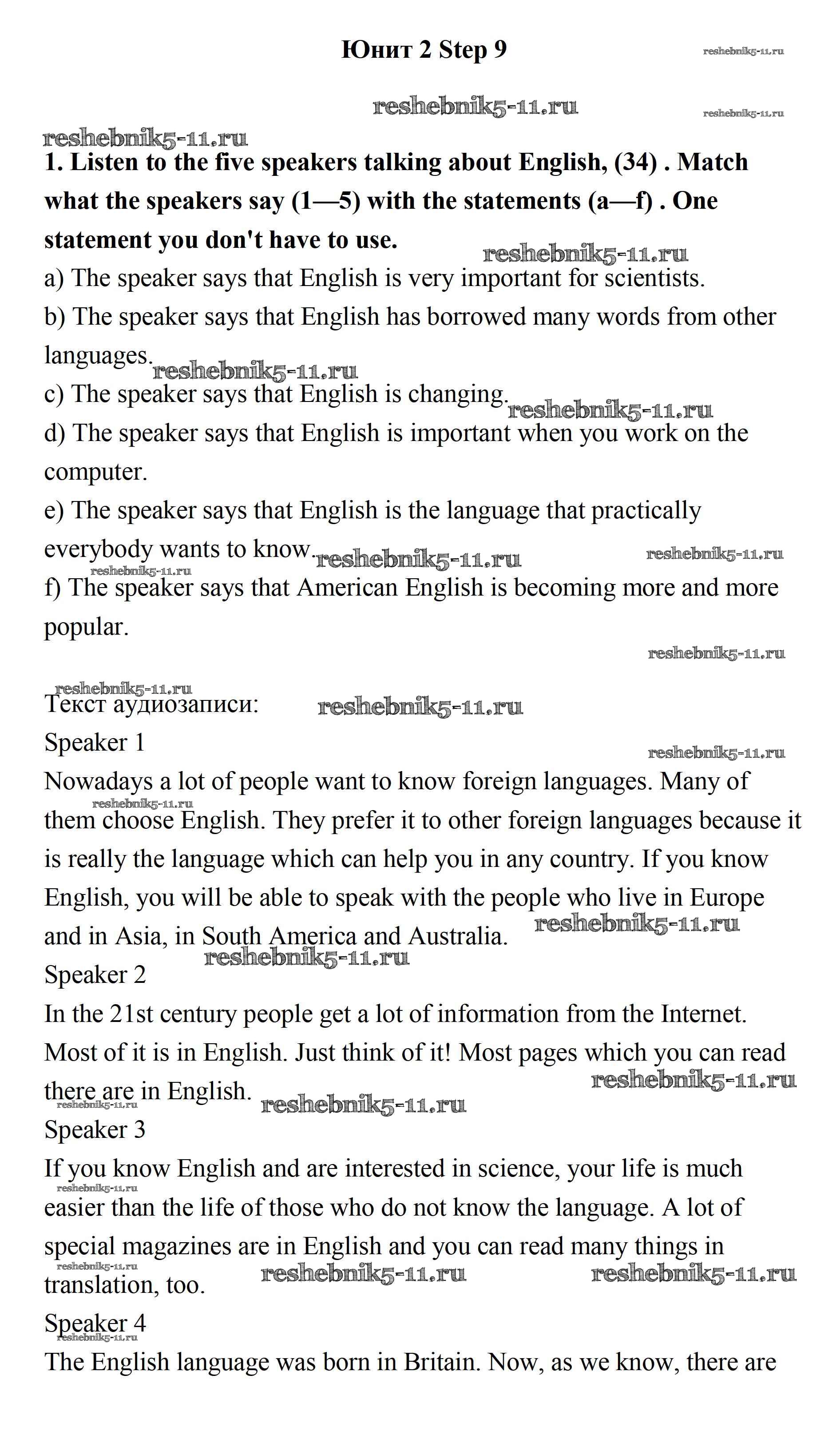 Готовая домашняя работа с ответами по Английскому языку за 7 класс Афанасьева, Михеева, Баранова Учебник Rainbow Часть 1, 2 Дрофа 2019 ФГОС - Step 9 Consolidation Class: 1