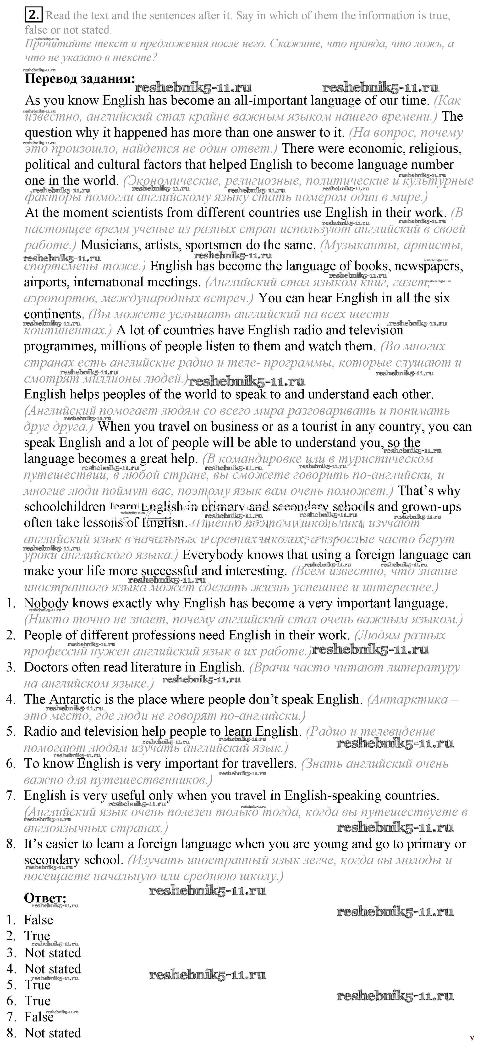 Готовая домашняя работа с ответами по Английскому языку за 7 класс Афанасьева, Михеева, Баранова Учебник Rainbow Часть 1, 2 Дрофа 2019 ФГОС - Step 9 Consolidation Class: 2