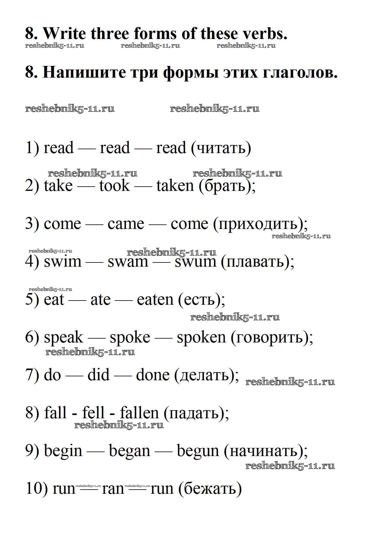 Готовая домашняя работа с ответами по Английскому языку за 7 класс Афанасьева, Михеева, Баранова Учебник Rainbow Часть 1, 2 Дрофа 2019 ФГОС - Step 9 Consolidation Class: 8