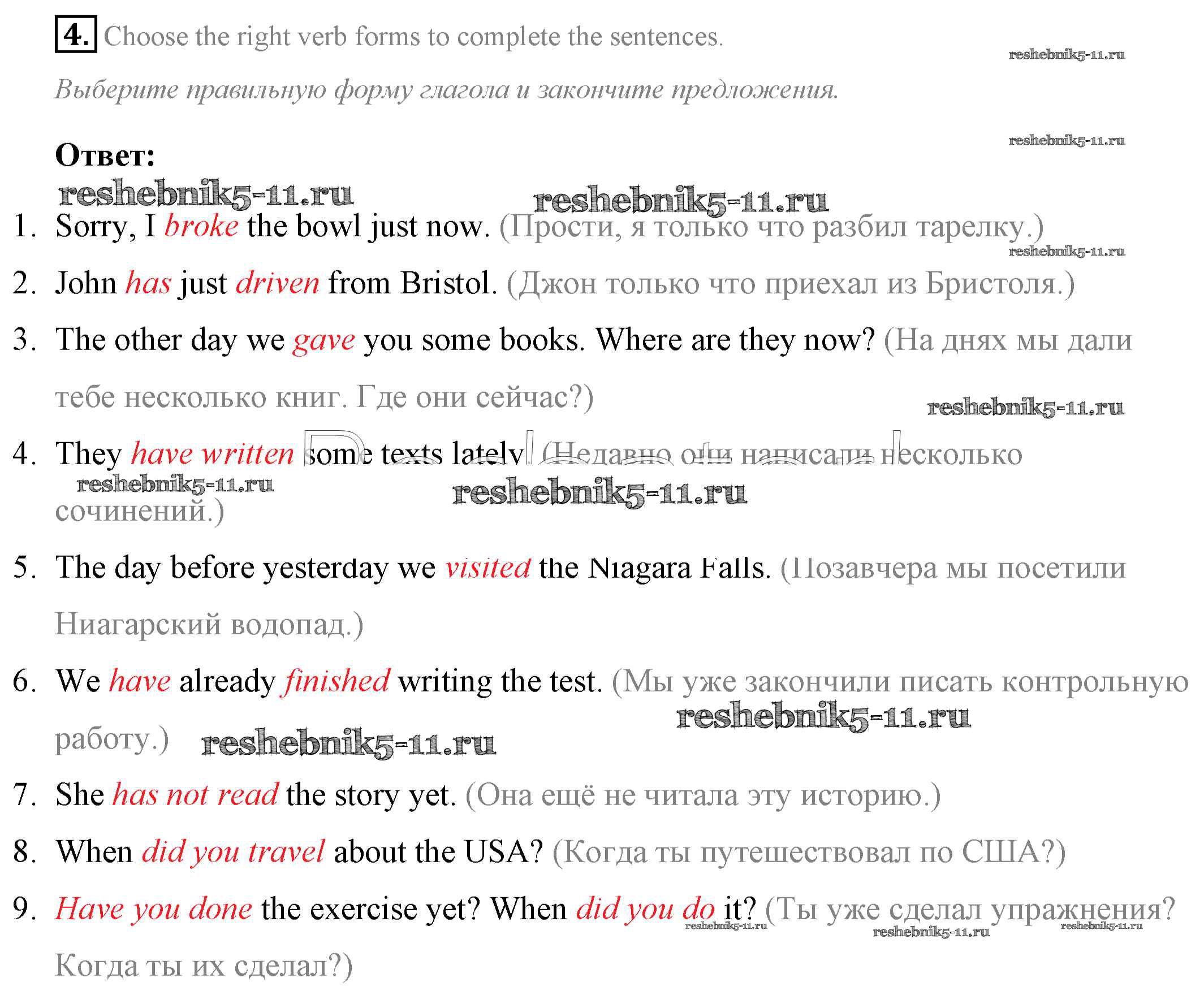 Готовая домашняя работа с ответами по Английскому языку за 7 класс Афанасьева, Михеева, Баранова Учебник Rainbow Часть 1, 2 Дрофа 2019 ФГОС - Step 10 Test Yourself: 4