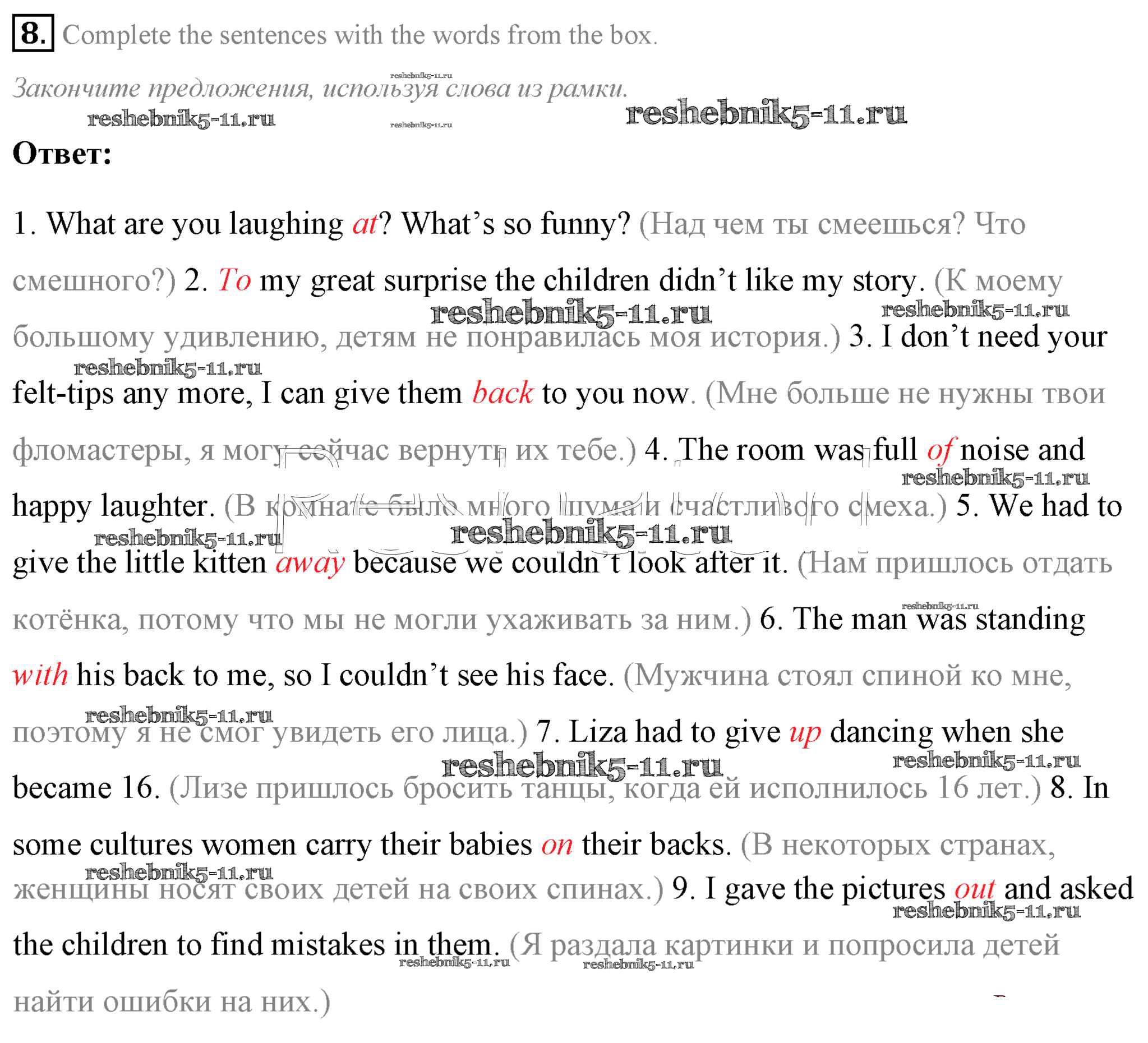Готовая домашняя работа с ответами по Английскому языку за 7 класс Афанасьева, Михеева, Баранова Учебник Rainbow Часть 1, 2 Дрофа 2019 ФГОС - Step 8 8