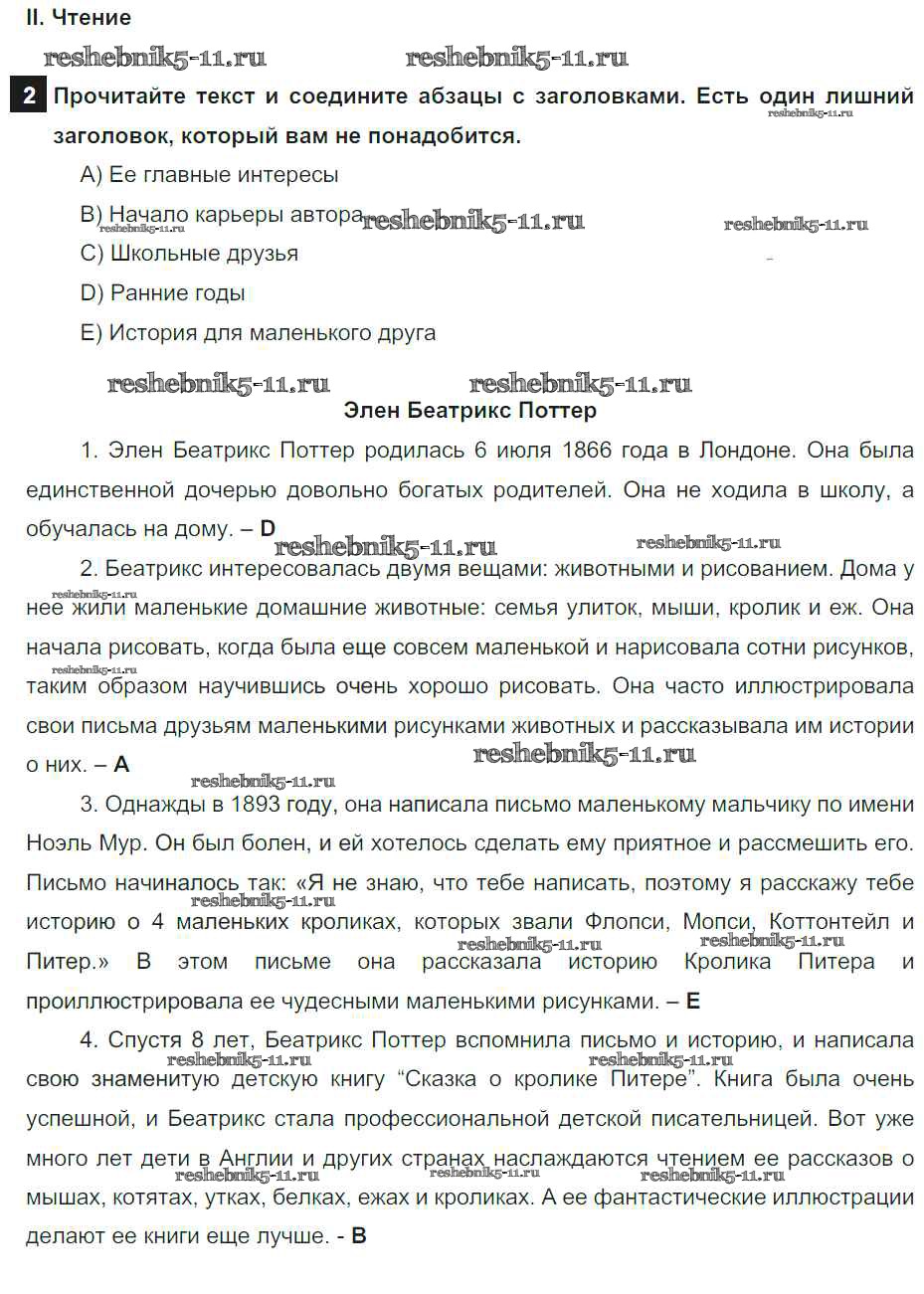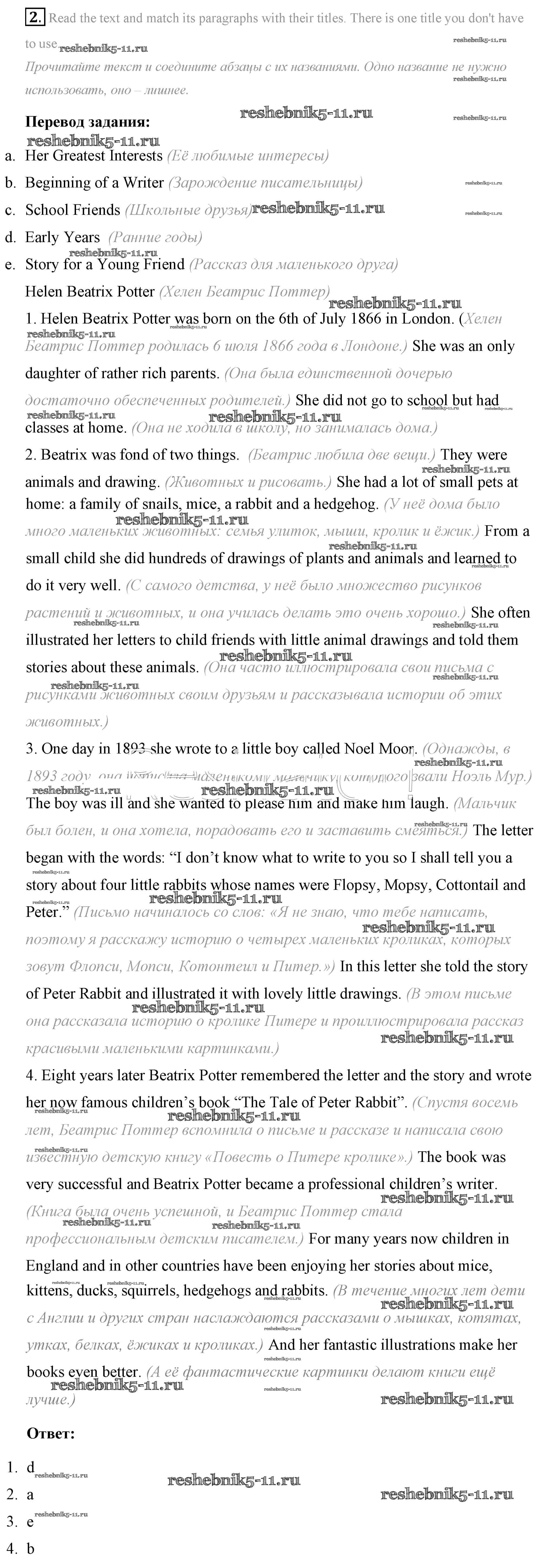 Готовая домашняя работа с ответами по Английскому языку за 7 класс Афанасьева, Михеева, Баранова Учебник Rainbow Часть 1, 2 Дрофа 2019 ФГОС - Step 10 Test Yourself: 2