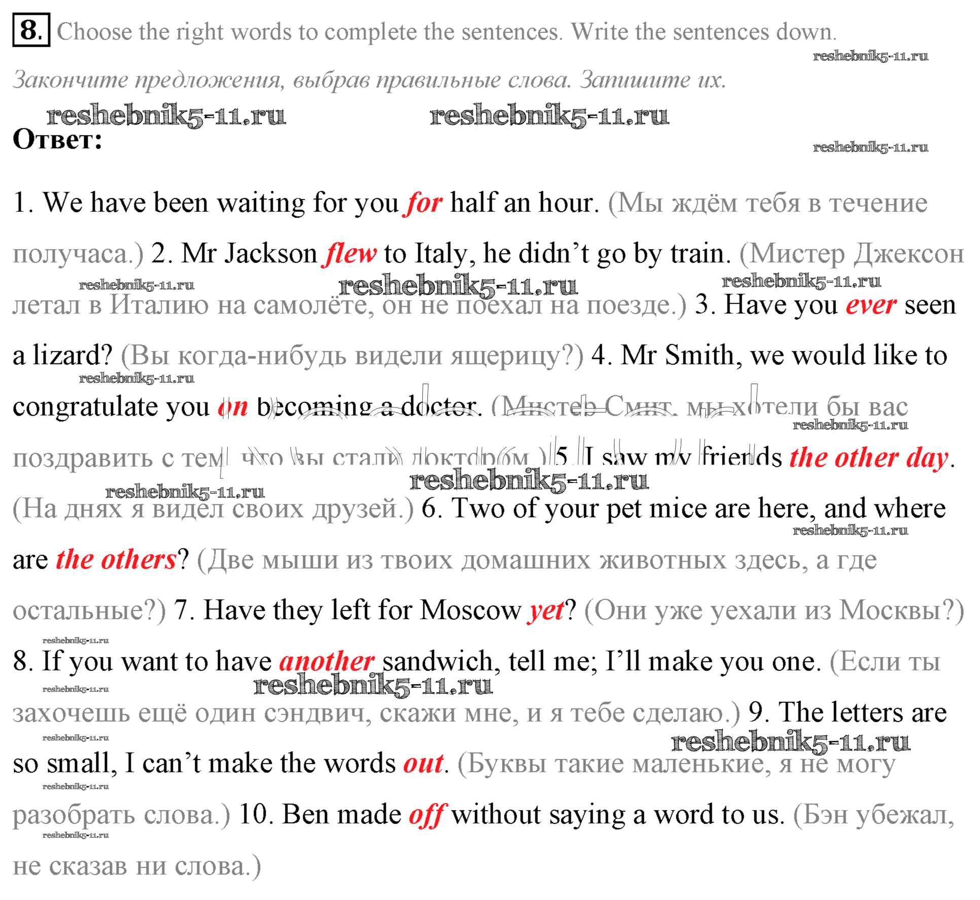 Готовая домашняя работа с ответами по Английскому языку за 7 класс Афанасьева, Михеева, Баранова Учебник Rainbow Часть 1, 2 Дрофа 2019 ФГОС - Step 9 Consolidation Class: 8