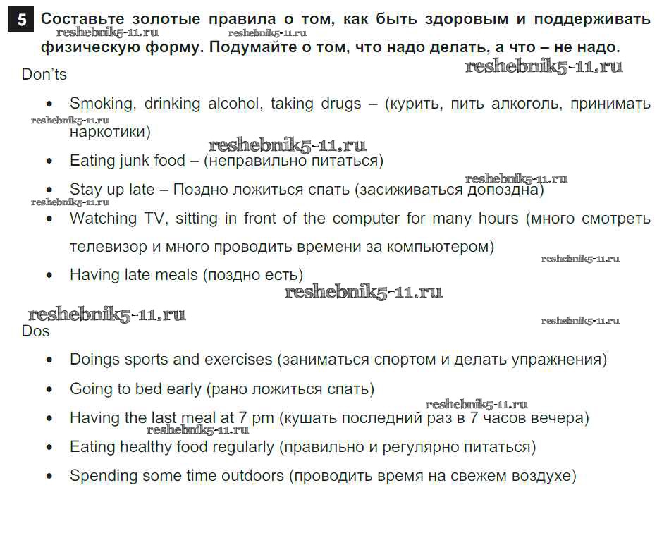 Готовая домашняя работа с ответами по Английскому языку за 7 класс Афанасьева, Михеева, Баранова Учебник Rainbow Часть 1, 2 Дрофа 2019 ФГОС - Step 10 Test Yourself: 5