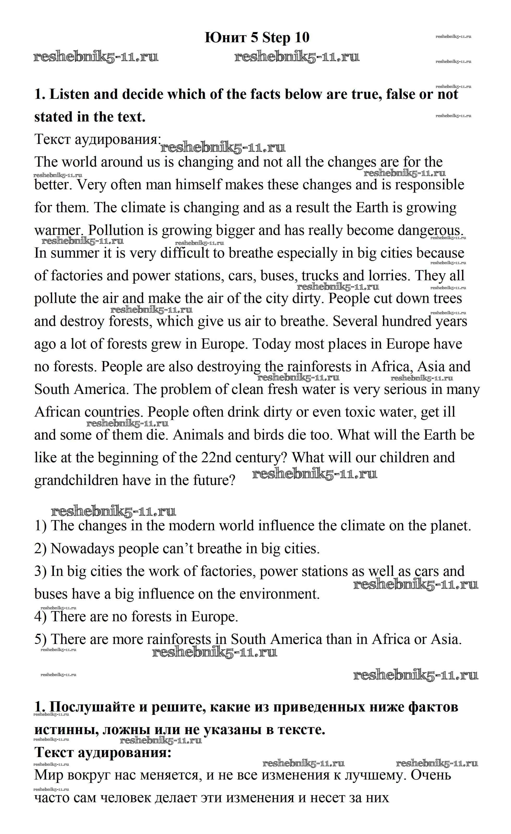 Готовая домашняя работа с ответами по Английскому языку за 7 класс Афанасьева, Михеева, Баранова Учебник Rainbow Часть 1, 2 Дрофа 2019 ФГОС - Step 10 Test Yourself: 1
