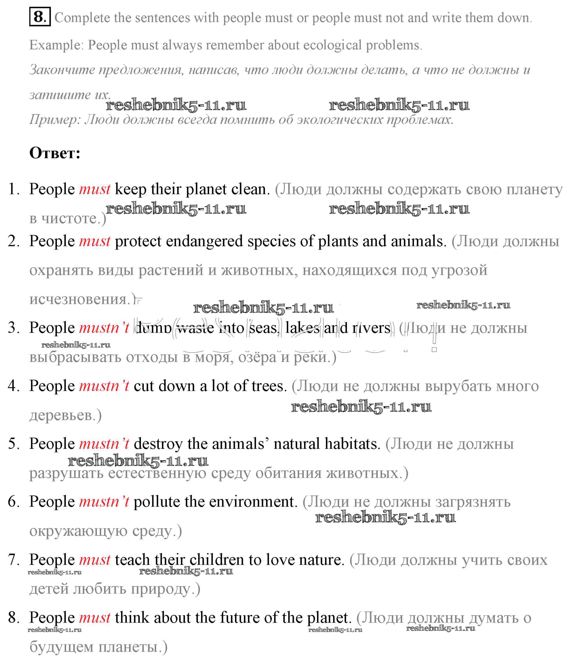 Готовая домашняя работа с ответами по Английскому языку за 7 класс Афанасьева, Михеева, Баранова Учебник Rainbow Часть 1, 2 Дрофа 2019 ФГОС - Step 8 8