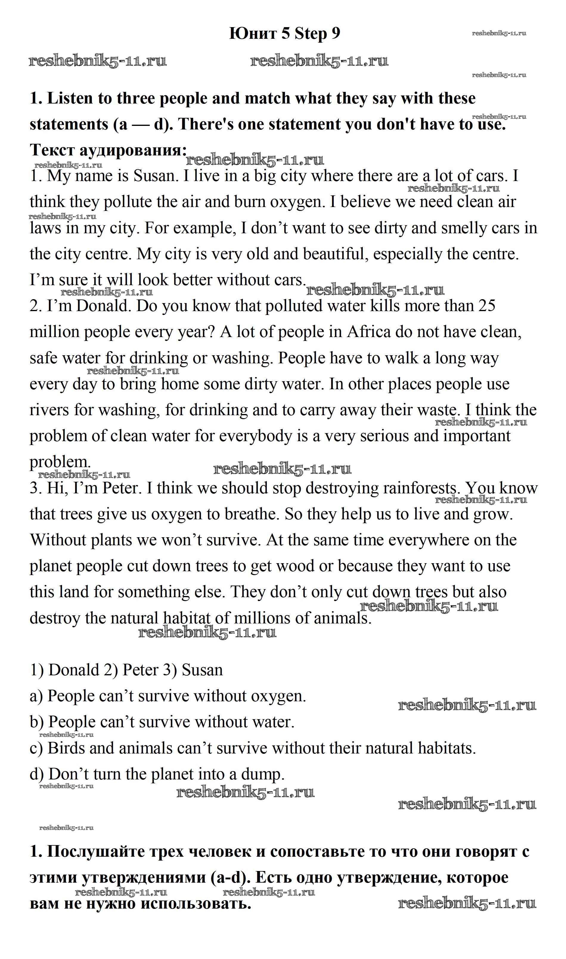 Готовая домашняя работа с ответами по Английскому языку за 7 класс Афанасьева, Михеева, Баранова Учебник Rainbow Часть 1, 2 Дрофа 2019 ФГОС - Step 9 Consolidation Class: 1