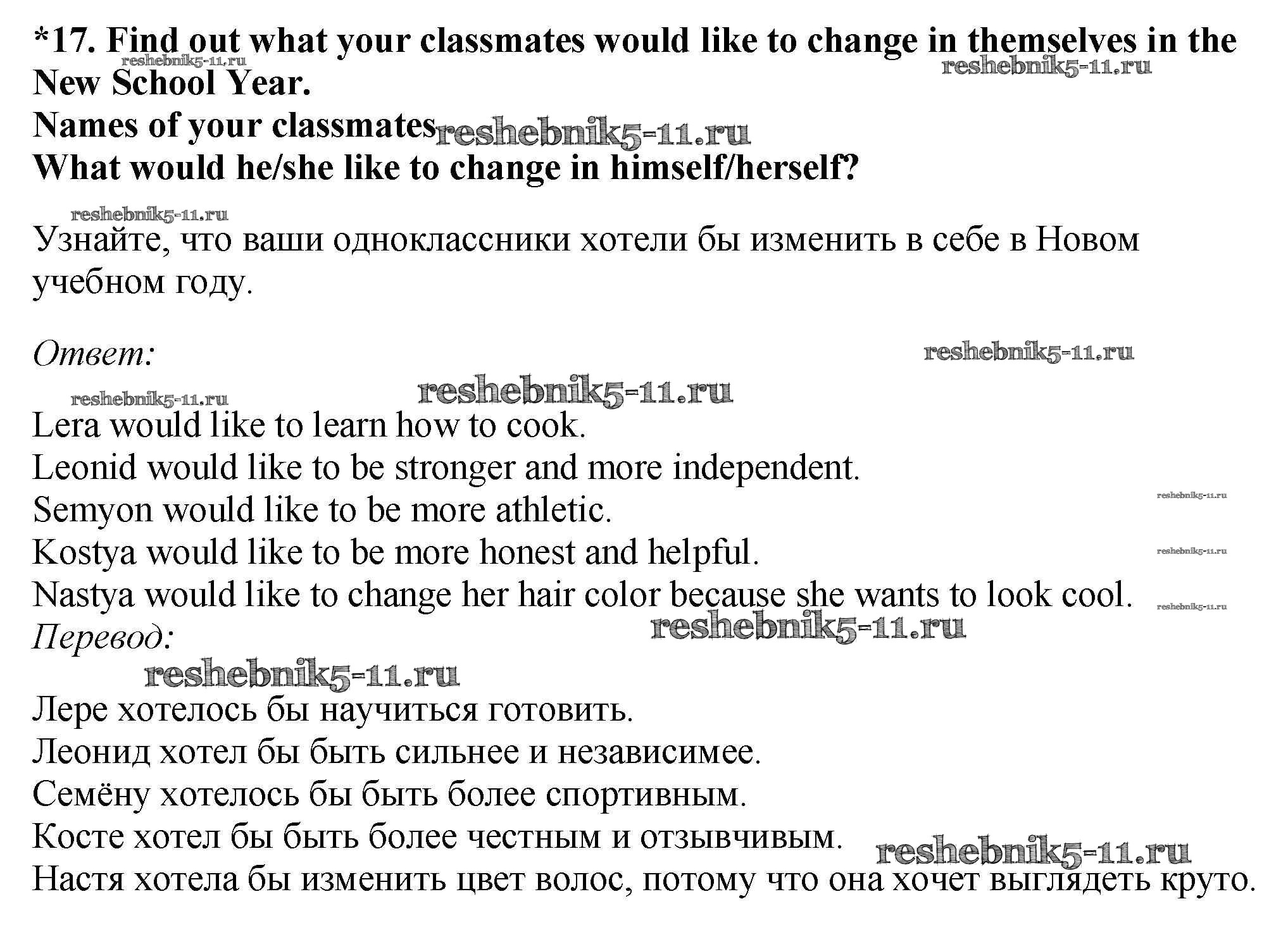 Готовая домашняя работа с ответами по Английскому языку за 7 класс Биболетова, Трубанева Учебник УМК Титул 2015 ФГОС - Exercises 17