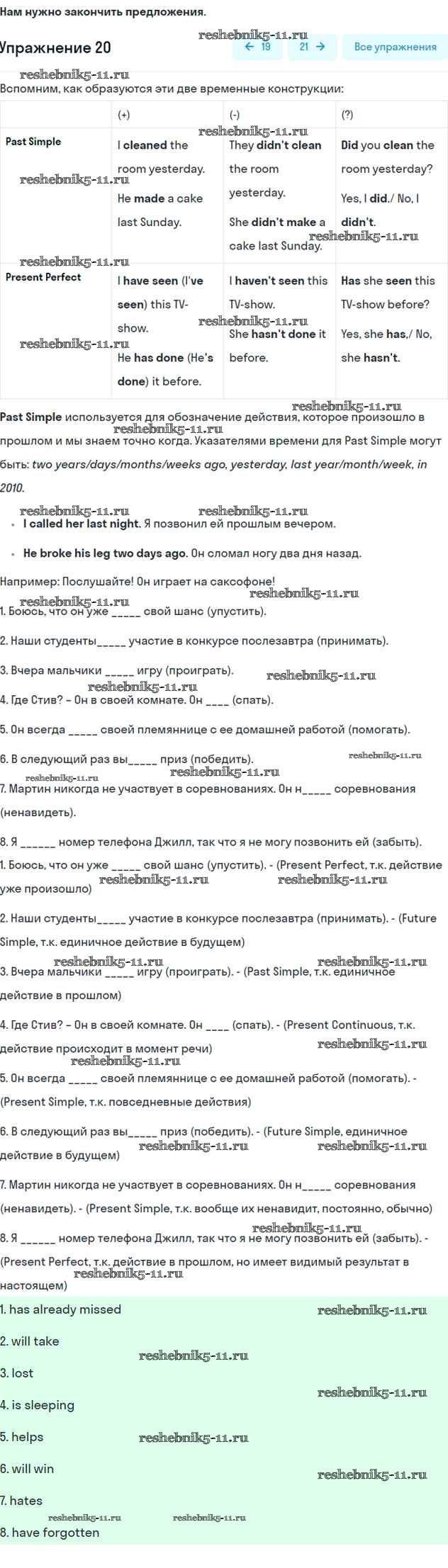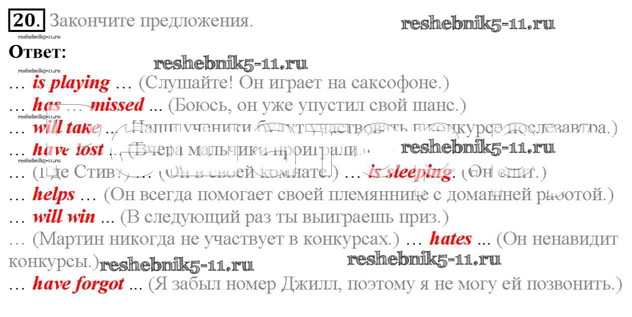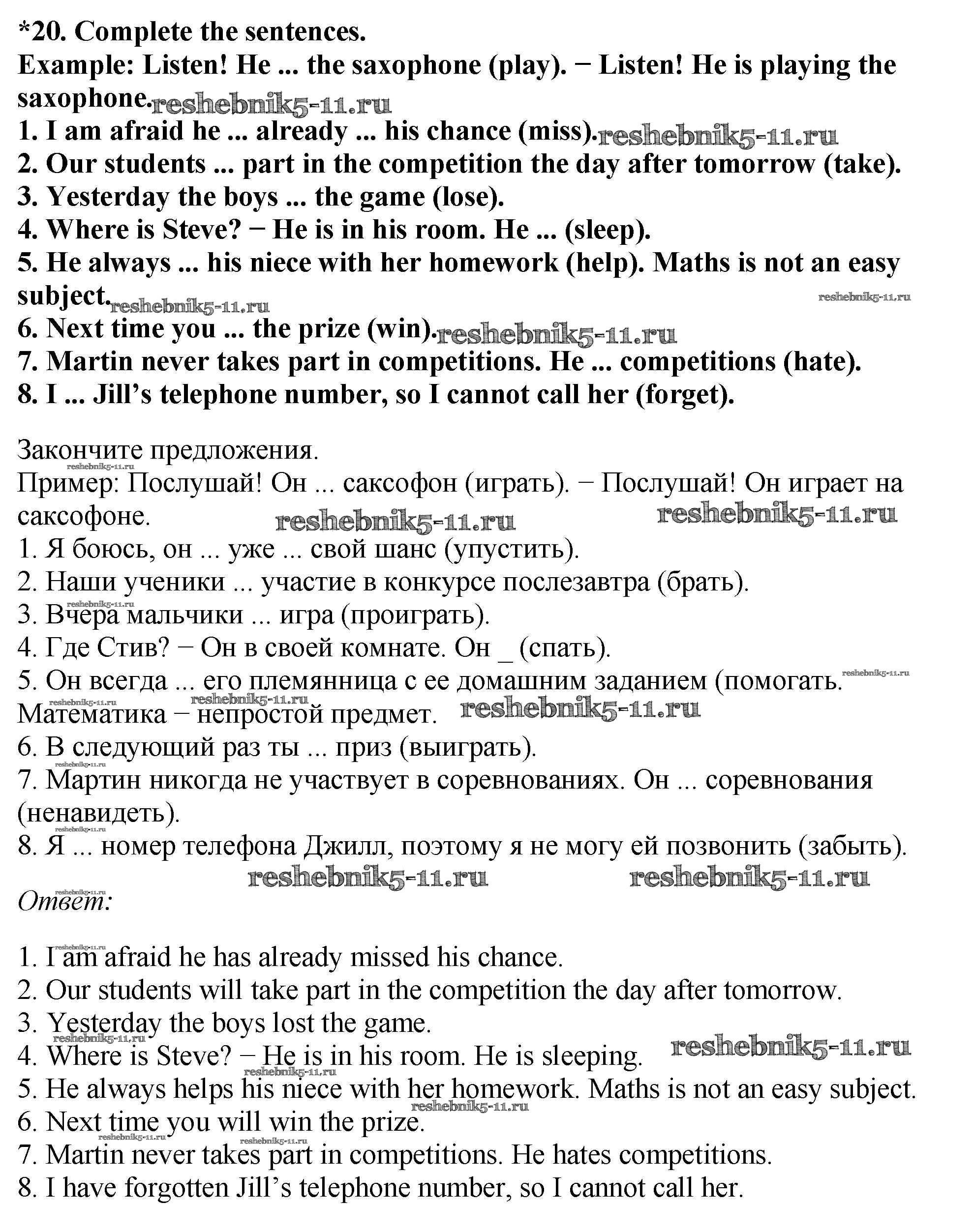 Готовая домашняя работа с ответами по Английскому языку за 7 класс Биболетова, Трубанева Учебник УМК Титул 2015 ФГОС - Exercises 20