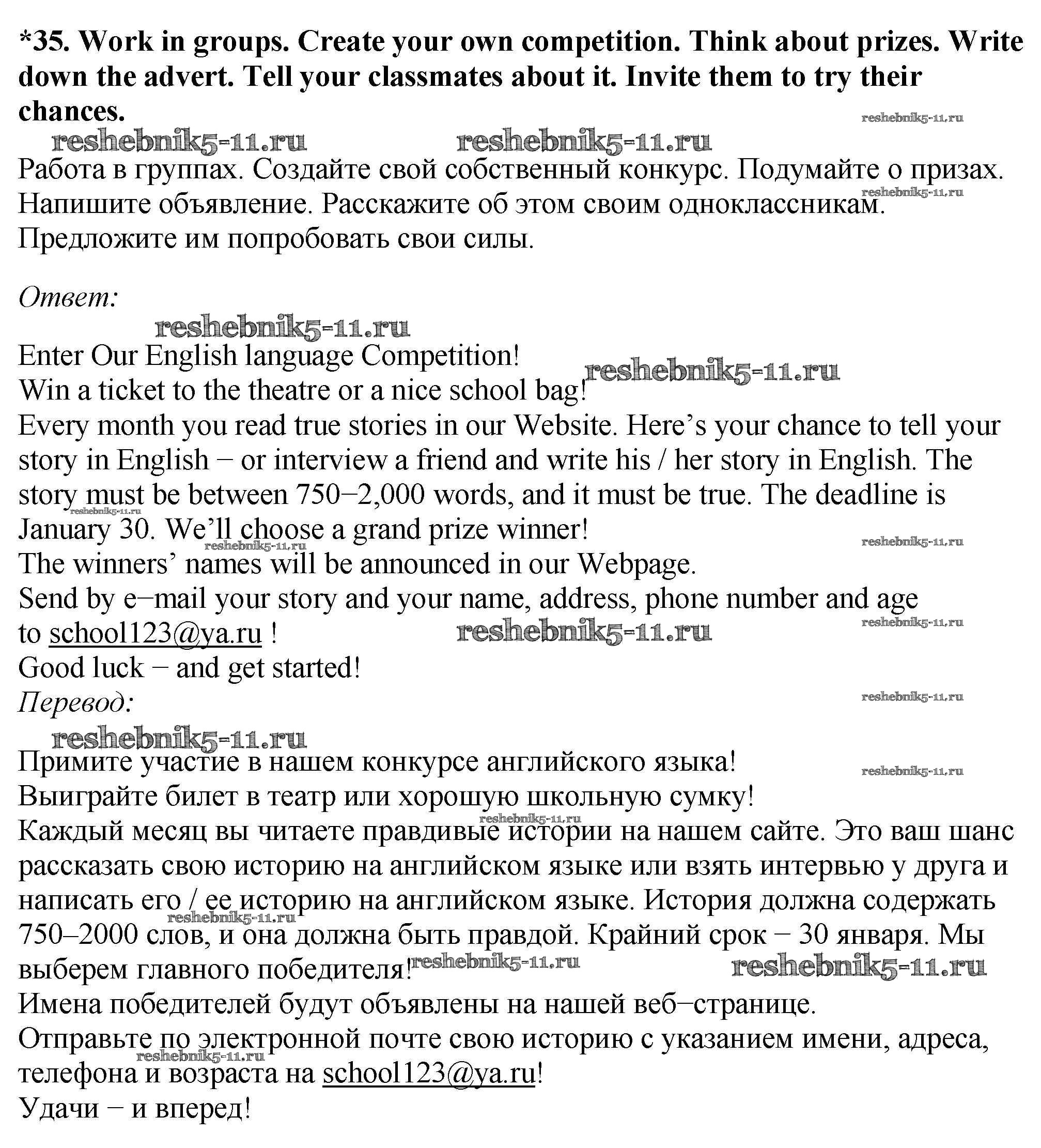 Готовая домашняя работа с ответами по Английскому языку за 7 класс Биболетова, Трубанева Учебник УМК Титул 2015 ФГОС - Exercises 35
