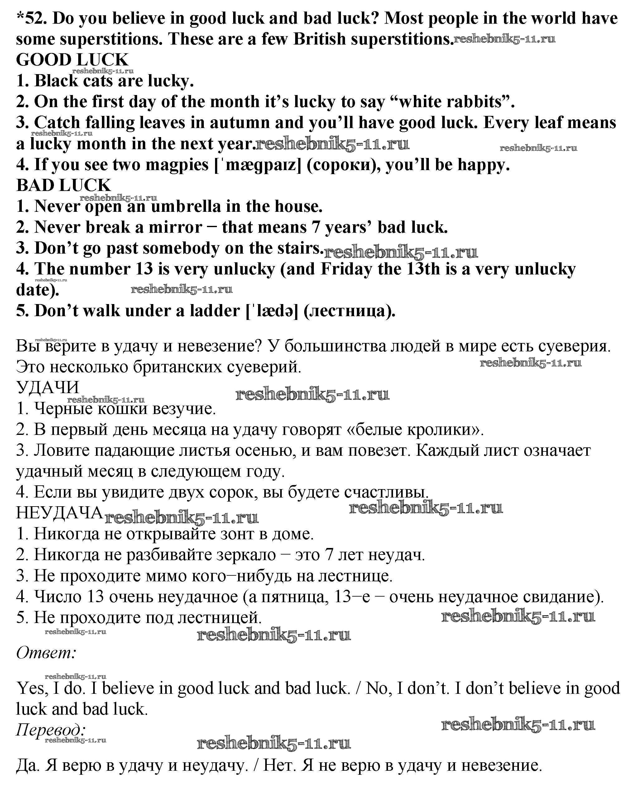 Готовая домашняя работа с ответами по Английскому языку за 7 класс Биболетова, Трубанева Учебник УМК Титул 2015 ФГОС - Exercises 52